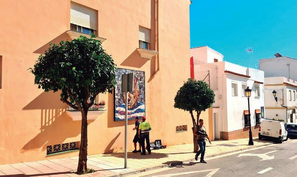 The large mural has been installed by municipal wor kers on the street in Sabinillas that bears the name of the Málaga artist. A council spokesperson said that "it is essential that each area of the municipality features these artistic works, which undoubtedly come to give a cultural attraction to our town".