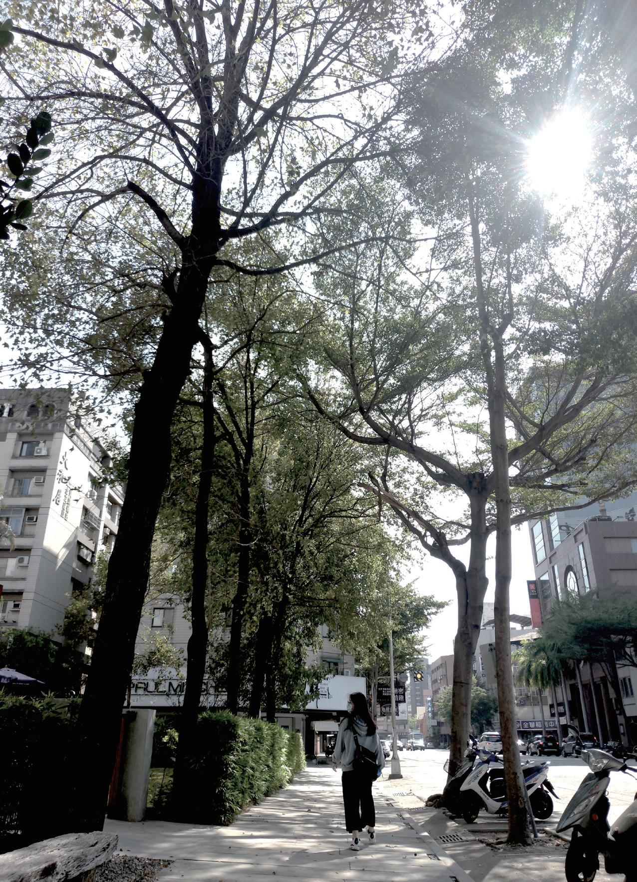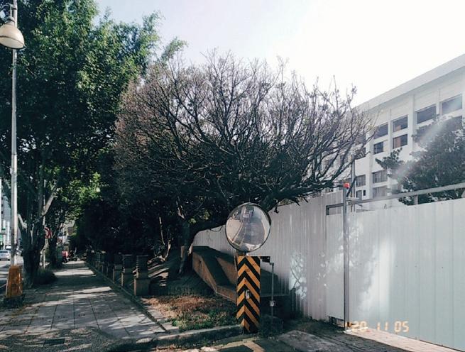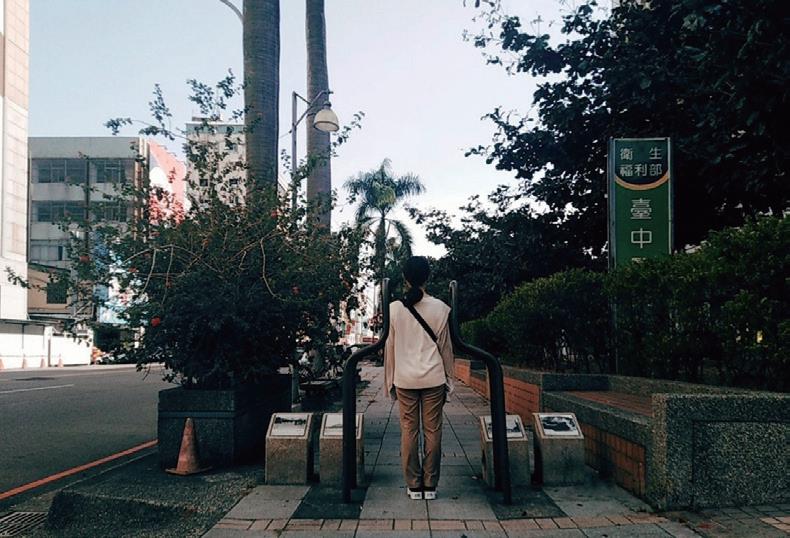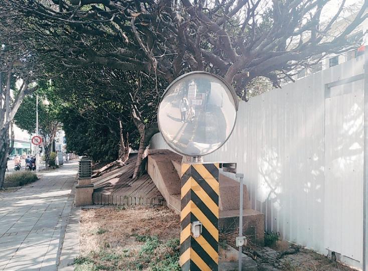 漫步在陽光斜照的民權路上,風栩栩地吹在樹上,地上微透著光斑,安靜的很 美;不經意看到的小事,明明是那樣的普通,可又那樣的不一樣,走在民權路 上。沿著民權路一旁的綠色長廊,只有醫院前特別加裝了防止機車穿越的特殊 造型欄杆,剛好只夠讓人行能穿越;州廳旁豎立一棵沒有半片葉子,卻被修剪 成平禿樣,加上了一面凸透鏡的樹,作為一棵樹一定感到相當無奈和榮幸;直 直望去,仔細一看商家住宅外的柱子上,發現了些不一樣,水管延伸向下、一