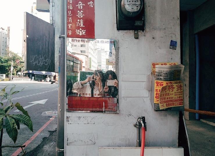 片經過時間磨損的鏡子,可是卻要人「整理儀容,保持禮節」,和每年必貼的 春聯,走走停停一定會停下腳步兆個鏡子,看著走在民權路上的自己。