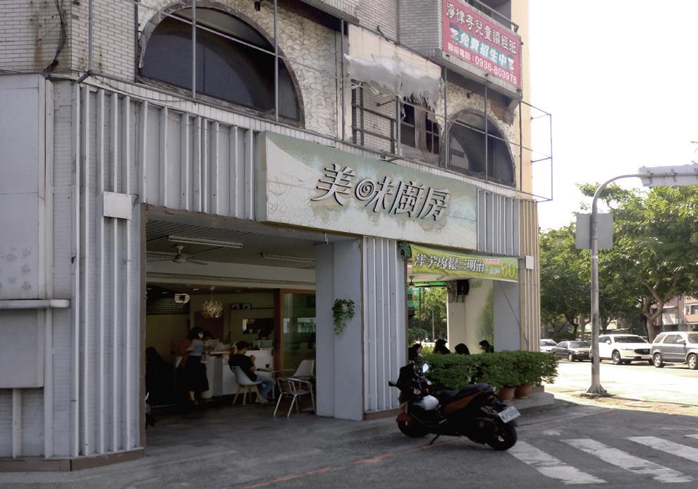 坐落在寬廣安靜的綠色園道旁,再興米糕對面的轉角 處,兩家美味,卻截然不同調的小店,完全融入民權 路這寧靜綠意的氛圍中。雖然沒有現代那樣光鮮亮麗 高級的感覺,食物的美味就足以讓人一再的回味,美 味廚房是民權人早上重要的活力來源,與象徵。