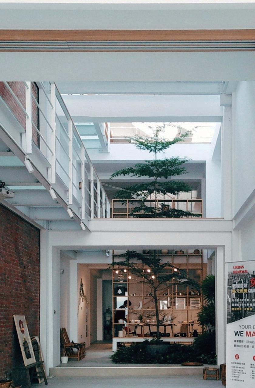 人聲中特例獨棟的,如精品屋般,踏進視覺被打空可是卻特別 劃分的盒中,無印良品將民權路空閒的老屋打掉內部構成,空 間開闊地和民權路一樣,風格採白色搭木質品,簡簡單單讓光 及玻璃延伸空間感,輕輕放上兩雙編織的夾腳拖,點綴圓滑下 邊角的銳利;框中帶景,暖暖的很暖,在這沉靜下,慵懶的、 舒服的,隨著空氣流動,巡遍民權路的各個角落。