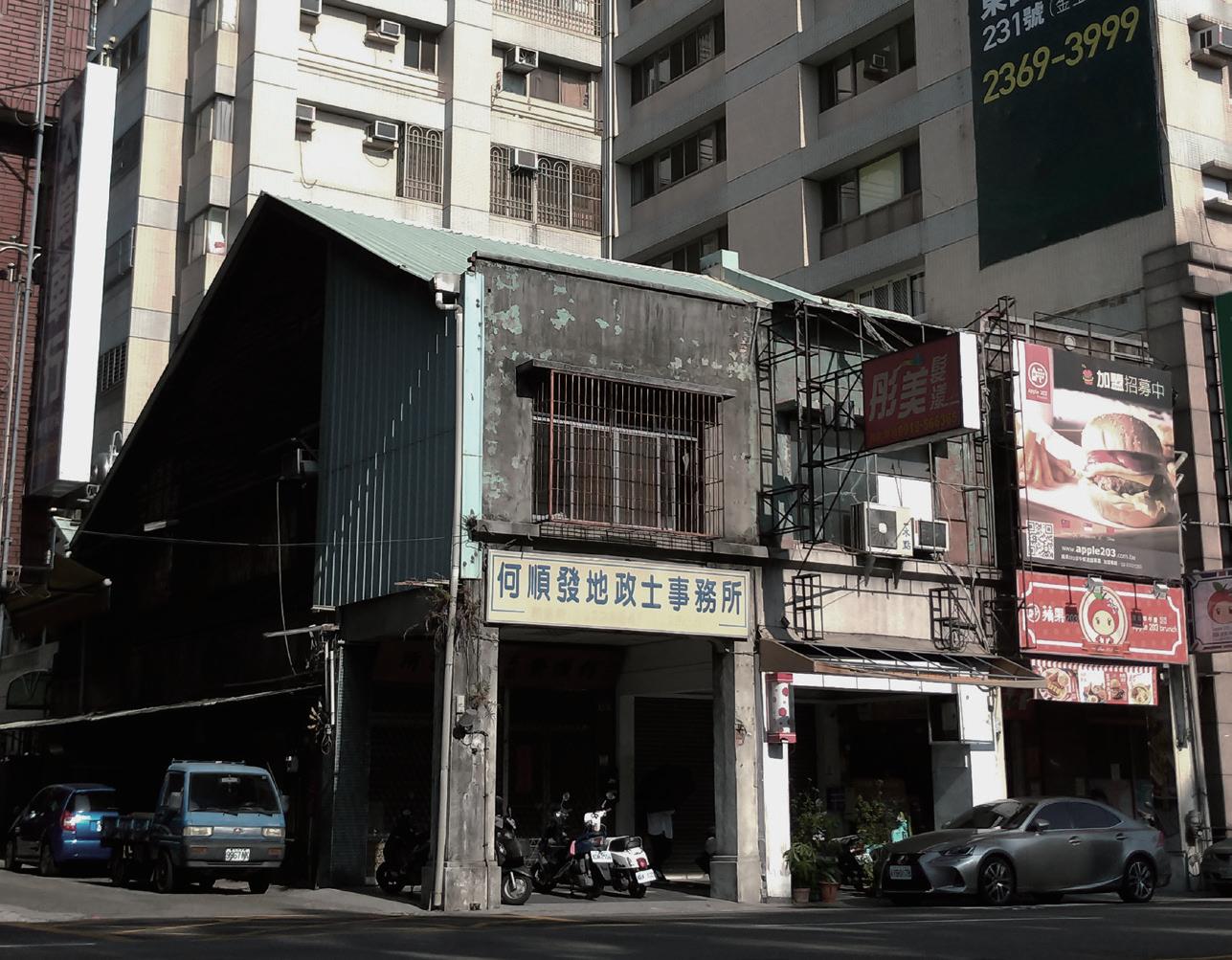 鐵皮屋頂、鐵皮牆壁,斑駁卻剩點 漆、生鏽到快可單手拆卸的欄杆, 雖然沒有特別的地方,但卻持續佇 立在那,那堅毅挺拔的姿態,何順 發地政士事務所。