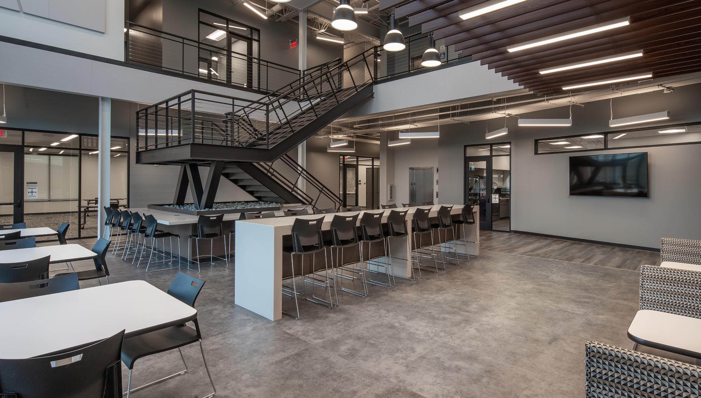Cuivre River Electrical Cooperative located in Troy, Missouri, is a two story 34,000 SF headquarter office building and serves as the largest of Missouri’s consumer-owned electric distribution cooperatives. CREC challenged O’Toole Design to create a new office space that would reinforce the interaction between the different work groups within the organization. A connecting stair was strategically positioned around a town center where employees could meet and collaborate.