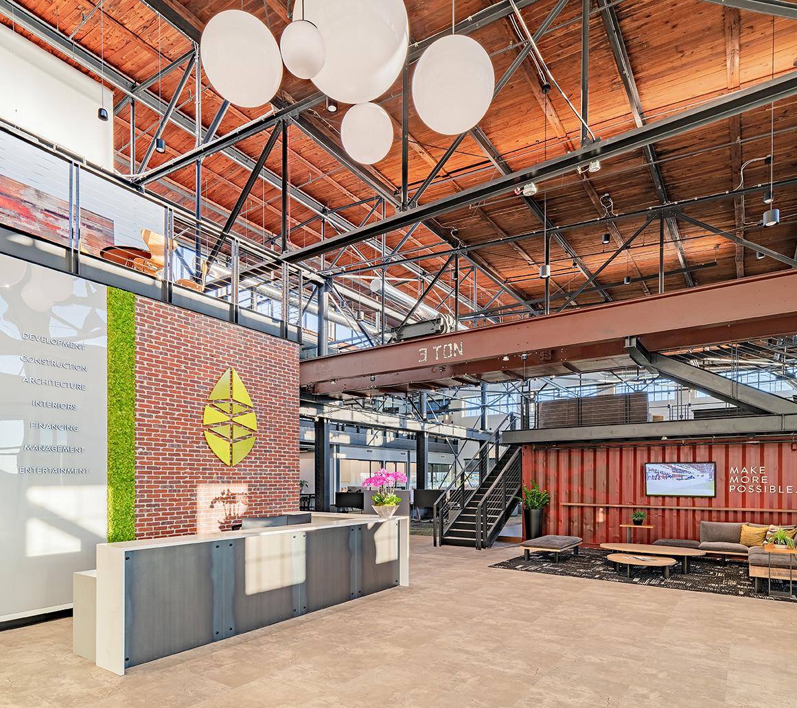 The use of large format LVT surfaces along main traffic corridors, combined the feel of exposed concrete while incorporating natural wood and steel elements to create a feeling of authenticity and warehouse chic.
