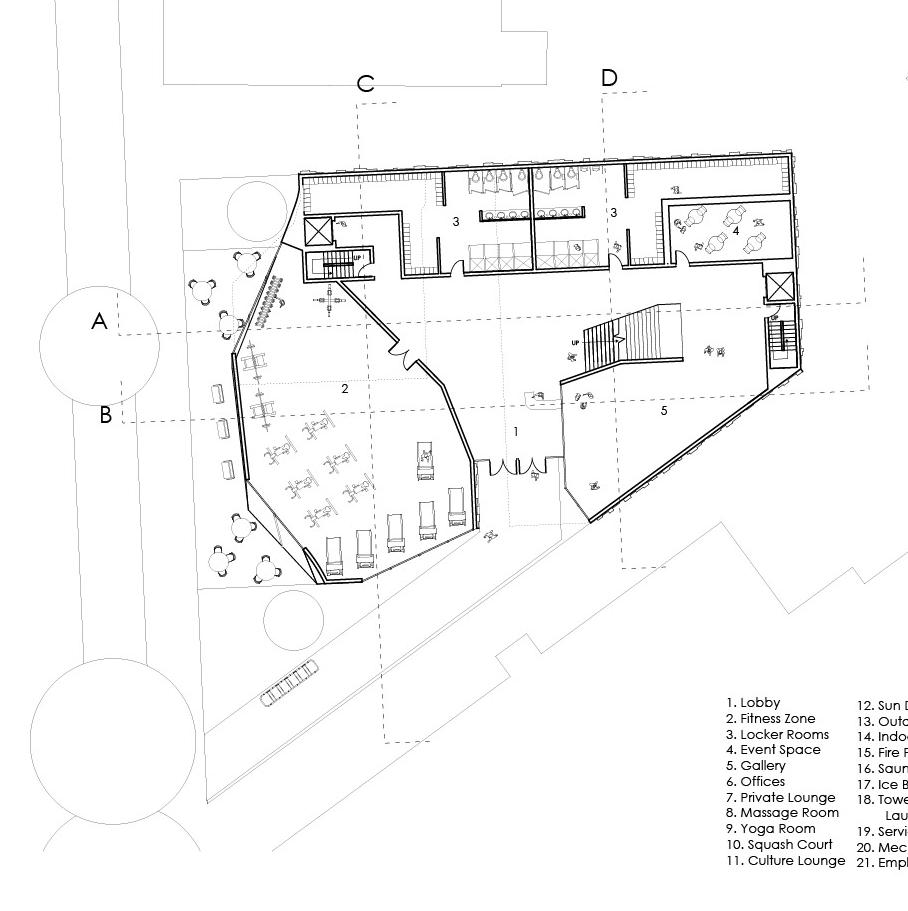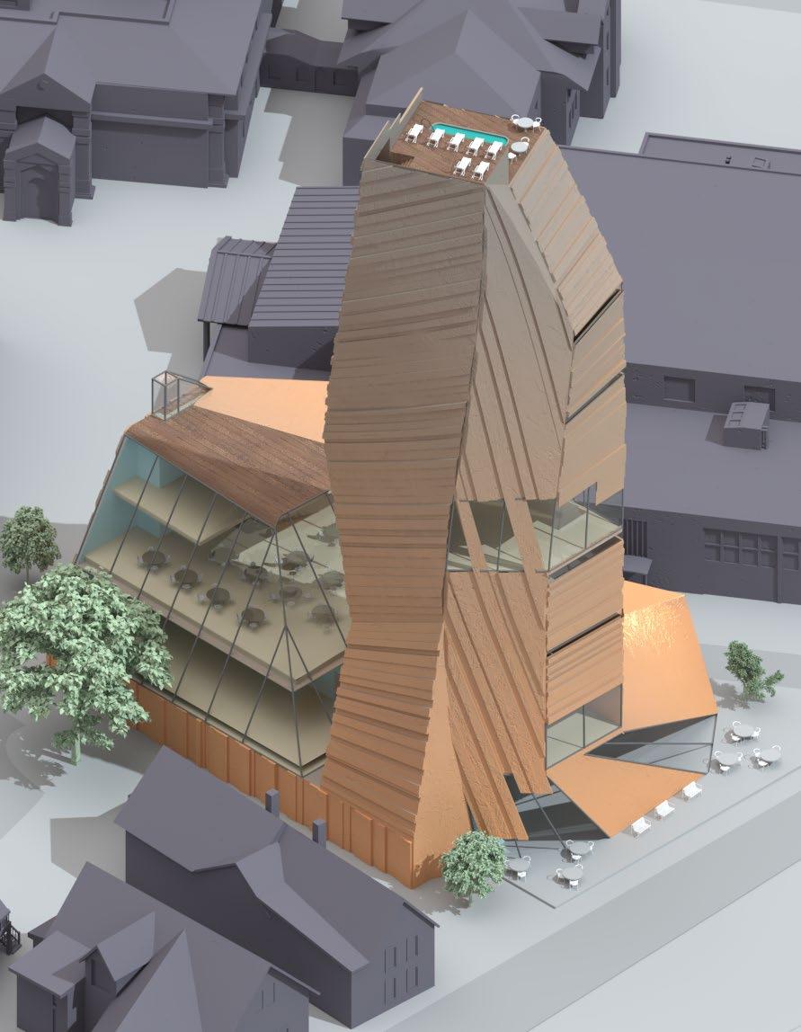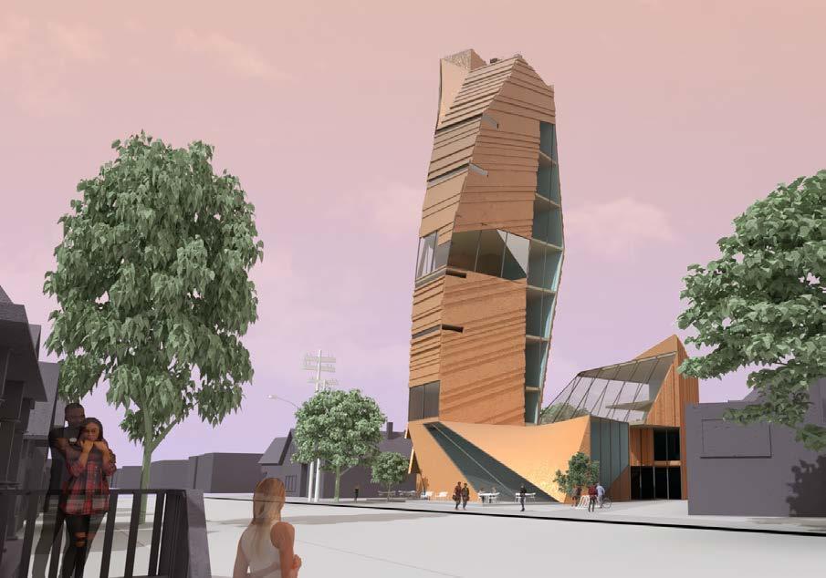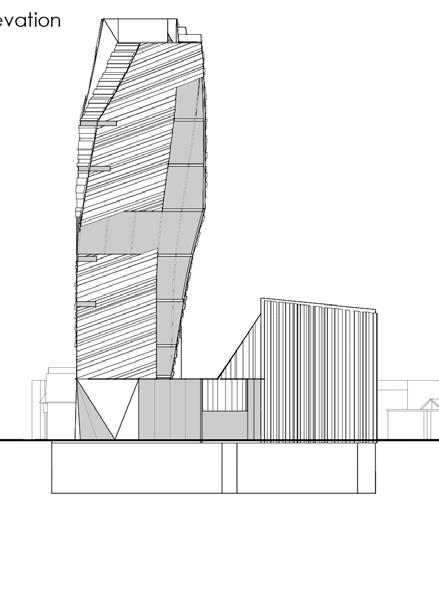 Through separating contrasting programs and using dramatic proportions and clashing forms, it creates a sense of tension and disunity within an urban environment, defined as the dissonant experience. The use of curvilinear versus rectilinear geometry to distinguish differing program uses, the lack of visual connections, and the striking height of the building compared to its context makes the project stand out as a dissonant experience within the city.