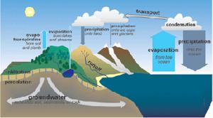 Figura 1: El ciclo hidrológico. Las flechas indican el volumen del agua que viaja de una reserva a otra.
