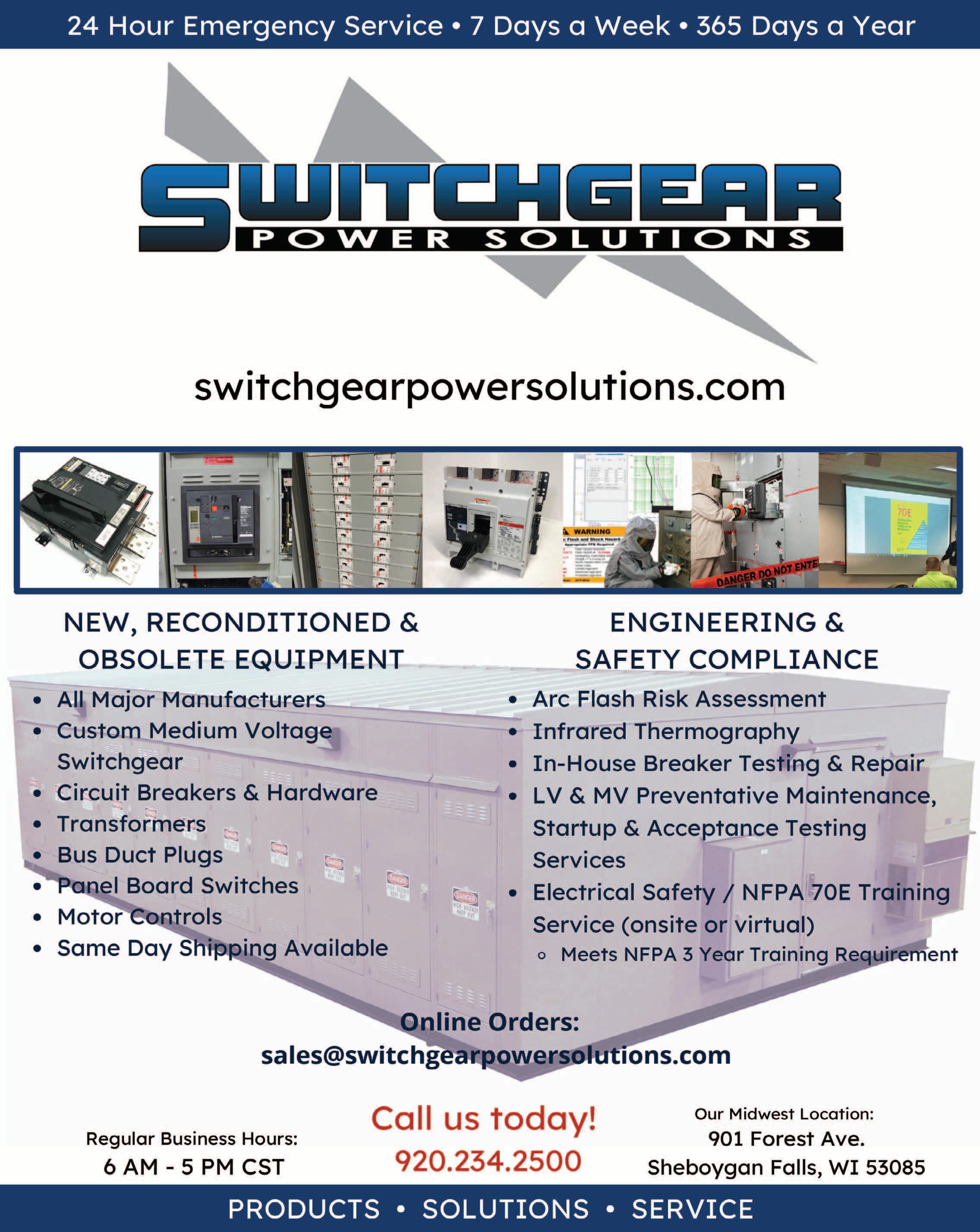 13 13 Switchgear Pwr Sol Switchgear Pwr Sol Sheboygan Falls, WI Sheboygan Falls, WI 920-234-2500 920-234-2500