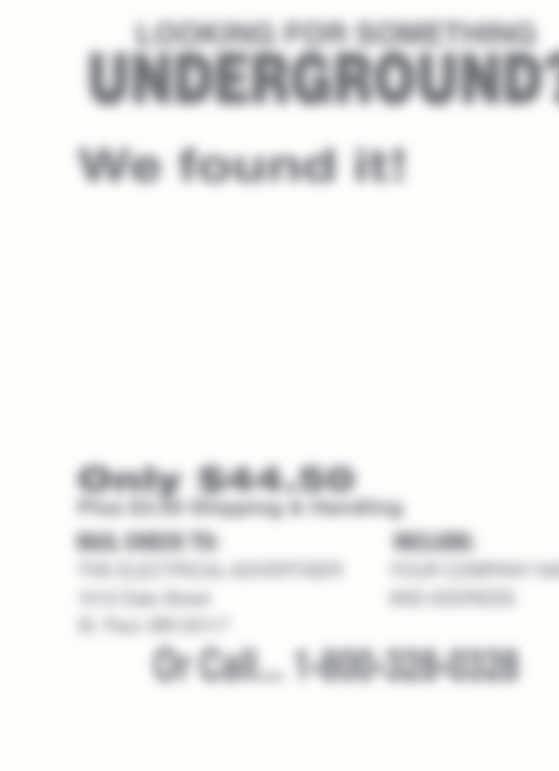 • Hi-Ranger • Telelect • Altec • • Time • Versalift • • Lift-All • Pole & Reel Trailers • • Pullers • Tensioners • • Augers • Winches • • New & Used Parts • JOHN A. MYERS ENTERPRISES A DIVISION OF EAST COAST RENTALS, INC. UTILITY TRUCK EQUIPMENT • SALES AND RENTALS 50+ YEARS EXPERIENCE BUCKET TRUCKS DIGGER-DERRICK TRUCKS – CALL TODAY –(336) 229-5588 OR FAX (336) 229-7082 www.jmyersenterprises.com FINANCE & LEASE PURCHASE ASSISTANCE AVAILABLE Large Inventory JEFF MYERS P.O. Box 3125 Burlington, N.C. 27215 ??? ? ? DID YOU KNOW.... You can rent our email list for $495 per one-time send? Call 800.328.0328 for details. Your Vehicles Should Be Here... Reduce Your Inventory And Expand Your Customer Base! 800-328-0328
