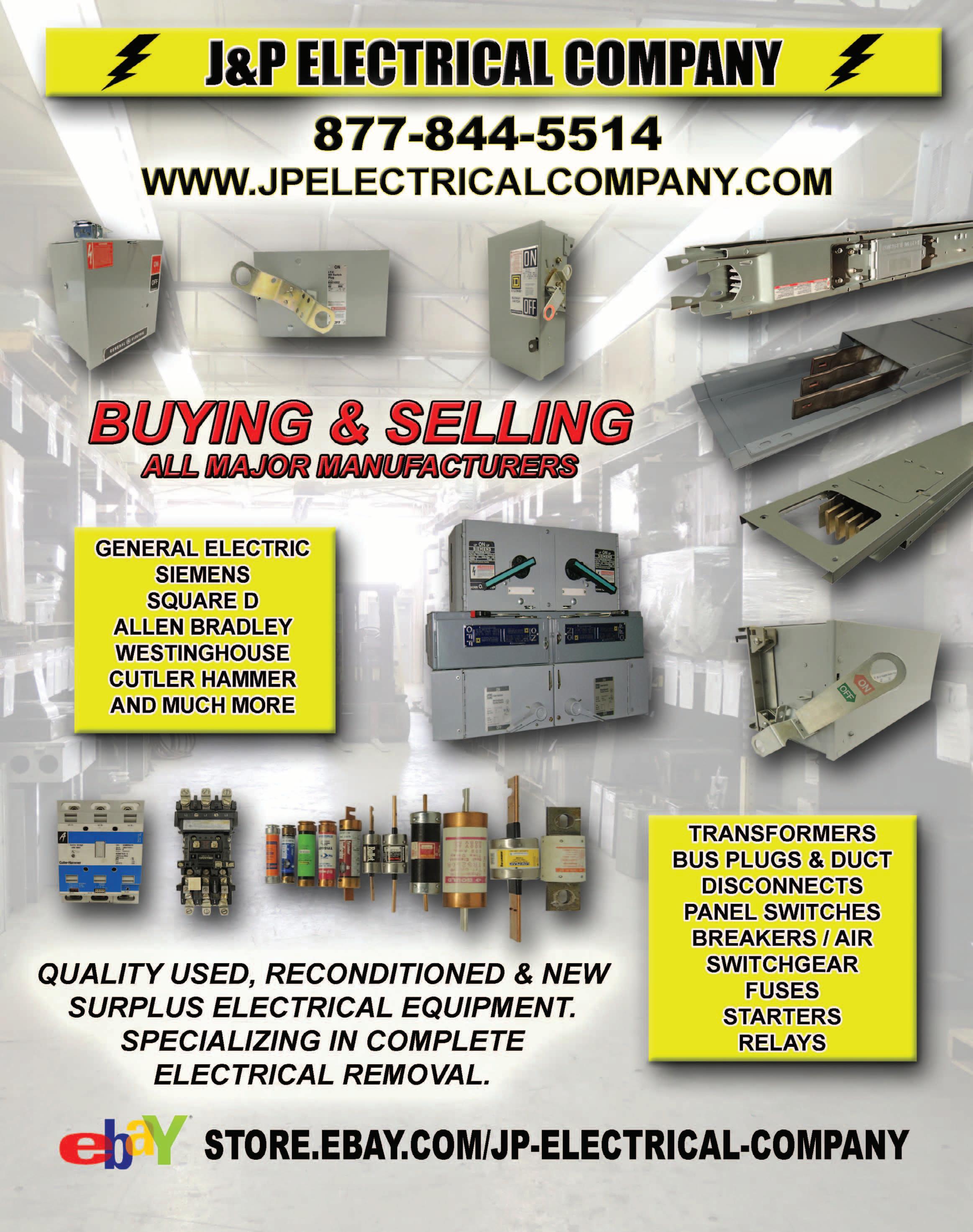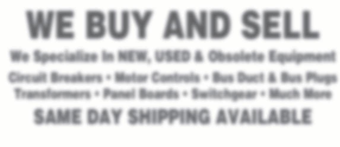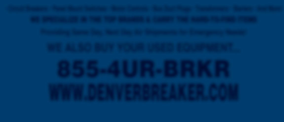 • ELECTRICAL PRODUCTS • 42 DECEMBER 2022 • • • • • • • • • • • • • • • • • • • • • • • • • • • • • • • ELECTRIC AVENUE • DECEMBER 2022 42 800-805-6557 www.utahbreakers.com brent@utahbreakers.com Specializing In New, Used, & Obsolete Molded Case Circuit Breakers Central Breaker & Control, LLC WE SELL u Circuit Breakers u Safety Switches u Motor Control u Bus Plugs ALL MAJOR BRANDS u New u Used u Obsolete Ph. 508-731-6181 Fx. 866-703-6717 ELECTRIC AVENUE CIRCUIT BREAKERS CIRCUIT BREAKERS CIRCUIT BREAKERS AMERICAN BREAKERS HHHHHHHHH Let Us Be Your #1 Source For Circuit Breakers, Switches & Hardware Etc. All Makes - Current & Obsolete New & Reconditioned 2 Year Warranty Lowest Prices Guaranteed! 888-317-6500 Email: amerbkrs1@cs.com www.americanbreakersca.net Se Habla Español QUALITY & VALUE OUR 15TH ANNIVERSARY! • BUS DUCT ALL MAJOR BRANDS IN STOCK: SQD, GE, WH, FPE, CH, ITE/Siemens, Gould & More! • BUS PLUGS ALL MAJOR BRANDS IN STOCK: SQD, GE, WH, FPE, CH, ITE/Siemens, Bulldog & More! • SQUARE D I-LINE PANELS & BREAKERS • CIRCUIT BREAKERS ALL MAJOR BRANDS • TRANSFORMERS Dry & Oil - Substations & Pad Mounts 1KVA - 3000KVA • MCC’s & BUCKETS Size 00 thru 6 - AB, SQD & More! • STARTERS & DISCONNECTS ALL MAJOR BRANDS WE ALSO BUY THESE ITEMS ph. 866-573-7768 865-573-7768 fx. 865-577-3105 www.volequip.com email: sales@volequip.com CIRCUIT BREAKERS CIRCUIT BREAKERS SOUTHBAY ELECTRICAL SUPPLY CORP WE BUY-SELL ALL MANUFACTURERS Circuit Breakers Vacuum & Air Breakers MCC & MCB Ph: 626-401-0111 Fax: 626-401-0113 For more info contact ttmsouthbay@att.net ALL TYPES OF CIRCUIT BREAKERS New - Obsolete Electrical Specialty Products Transformers Motor Control Starters • MCC’s etc.. All Mfrs and Types “We ship nationwide” Insured and Guaranteed 650-802-6700 sales@sforeps.com REPRESENTATIVES INC. BUY • SELL • REPAIR BREAKERS & ELECTRICAL EQUIPMENT NEW - USED - OBSOLETE RECONDITIONED COAST TO COAST SHIPPING 24 Hr. EMERGENCY SERVICE PH: 805-642-1507 FAX: 805-642-1596 mccelectricalsupply@yahoo.com Ph 323-564-4777 Fx 323-564-5777 calibreakers@gmail.com Ph 323-564-4777 Fx 323-564-5777 calibreakers@gmail.com Buy, Sell & Repair Circuit Breakers Motor Control & More All Major Brands New & Used Electrical Your Copy of The Electrical Advertiser is Recyclable. ELECTRICAL CONTRACTORS Looking for hard-to-find electrical products? Try using PowerQuote... It’s fast, it’s easy & it works! Go to... Electrical Advertiser.com 2,000 Items For Sale on PowerSell www.electrical advertiser.com THE NEXT QUICK REFERENCE DIRECTORY IS January 2023! CALL TO ADVERTISE YOUR ELECTRICAL INDUSTRY ROLODEX