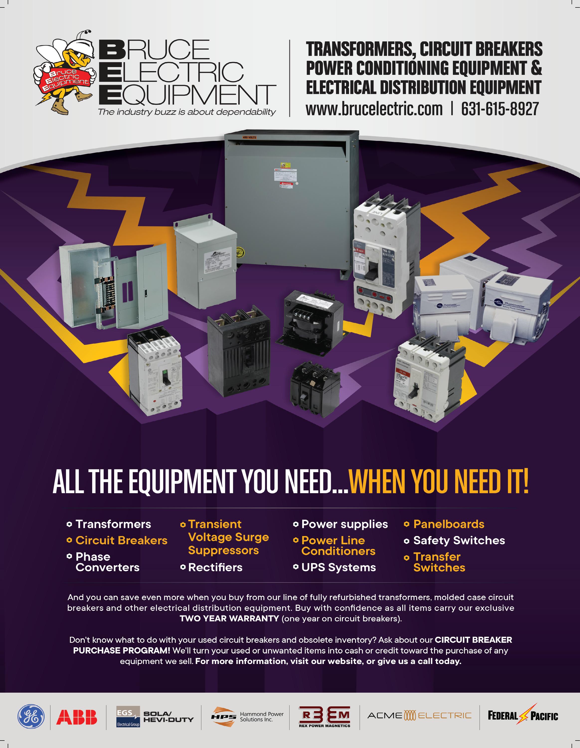 • ELECTRICAL PRODUCTS • 42 FEBRUARY 2023 • • • • • • • • • • • • • • • • • • • • • • • • • • • • • • • ELECTRIC AVENUE • FEBRUARY 2023 42 800-805-6557 www.utahbreakers.com brent@utahbreakers.com Specializing In New, Used, & Obsolete Molded Case Circuit Breakers Central Breaker & Control, LLC WE SELL u Circuit Breakers u Safety Switches u Motor Control u Bus Plugs ALL MAJOR BRANDS u New u Used u Obsolete Ph. 508-731-6181 Fx. 866-703-6717 ELECTRIC AVENUE CIRCUIT BREAKERS CIRCUIT BREAKERS CIRCUIT BREAKERS AMERICAN BREAKERS HHHHHHHHH Let Us Be Your #1 Source For Circuit Breakers, Switches & Hardware Etc. All Makes - Current & Obsolete New & Reconditioned 2 Year Warranty Lowest Prices Guaranteed! 888-317-6500 Email: amerbkrs1@cs.com www.americanbreakersca.net Se Habla Español QUALITY & VALUE OUR 15TH ANNIVERSARY! • BUS DUCT ALL MAJOR BRANDS IN STOCK: SQD, GE, WH, FPE, CH, ITE/Siemens, Gould & More! • BUS PLUGS ALL MAJOR BRANDS IN STOCK: SQD, GE, WH, FPE, CH, ITE/Siemens, Bulldog & More! • SQUARE D I-LINE PANELS & BREAKERS • CIRCUIT BREAKERS ALL MAJOR BRANDS • TRANSFORMERS Dry & Oil - Substations & Pad Mounts 1KVA - 3000KVA • MCC’s & BUCKETS Size 00 thru 6 - AB, SQD & More! • STARTERS & DISCONNECTS ALL MAJOR BRANDS WE ALSO BUY THESE ITEMS ph. 866-573-7768 865-573-7768 fx. 865-577-3105 www.volequip.com email: sales@volequip.com CIRCUIT BREAKERS CIRCUIT BREAKERS SOUTHBAY ELECTRICAL SUPPLY CORP WE BUY-SELL ALL MANUFACTURERS Circuit Breakers Vacuum & Air Breakers MCC & MCB Ph: 626-401-0111 Fax: 626-401-0113 For more info contact ttmsouthbay@att.net ALL TYPES OF CIRCUIT BREAKERS New - Obsolete Electrical Specialty Products Transformers Motor Control Starters • MCC’s etc.. All Mfrs and Types “We ship nationwide” Insured and Guaranteed 650-802-6700 sales@sforeps.com REPRESENTATIVES INC. BUY • SELL • REPAIR BREAKERS & ELECTRICAL EQUIPMENT NEW - USED - OBSOLETE RECONDITIONED COAST TO COAST SHIPPING 24 Hr. EMERGENCY SERVICE PH: 805-642-1507 FAX: 805-642-1596 mccelectricalsupply@yahoo.com Ph 323-564-4777 Fx 323-564-5777 calibreakers@gmail.com Ph 323-564-4777 Fx 323-564-5777 calibreakers@gmail.com Buy, Sell & Repair Circuit Breakers Motor Control & More All Major Brands New & Used Electrical Your Copy of The Electrical Advertiser is Recyclable. ELECTRICAL CONTRACTORS Looking for hard-to-find electrical products? Try using PowerQuote... It’s fast, it’s easy & it works! Go to... Electrical Advertiser.com 2,000 Items For Sale on PowerSell www.electrical advertiser.com THE NEXT QUICK REFERENCE DIRECTORY IS February 2023! CALL TO ADVERTISE YOUR ELECTRICAL INDUSTRY ROLODEX