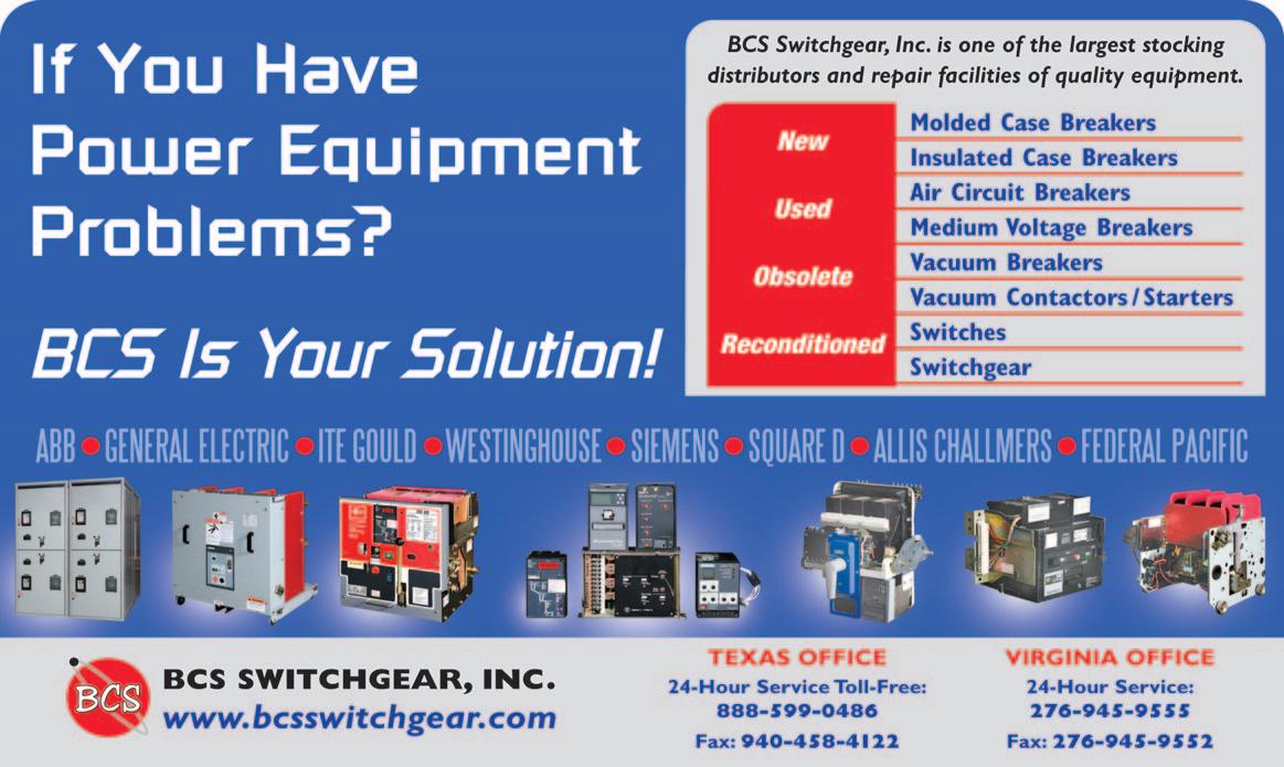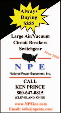Bringing Electrical Professionals Together Since 1983 WE BUY AND SELL We Specialize In NEW, USED & Obsolete Equipment Circuit Breakers • Motor Controls • Bus Duct & Bus Plugs Transformers • Panel Boards • Switchgear • Much More SAME DAY SHIPPING AVAILABLE Specializing in Electrical Clean Outs & Demolition Recovery 800-376-5657 www.EastCoastBreaker.com buysell@eastcoastbreakersupply.com