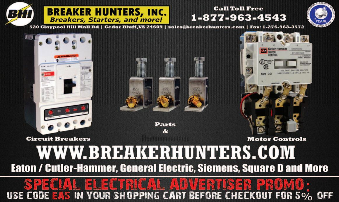 Mention Promo Code EA2024 and RECEIVE 10% OFF! YES... WE HAVE THAT! One of the Nation's Largest Inventories of NEW • Inspected & Tested • Obsolete! • Circuit Breakers • Panel Mount Switches • Motor Controls • Bus Duct Plugs • Transformers • Starters • And More! WE SPECIALIZE IN THE TOP BRANDS & CARRY THE HARD-TO-FIND ITEMS Providing Same Day, Next Day Air Shipments for Emergency Needs! WE ALSO BUY YOUR USED EQUIPMENT... 855-4UR-BRKR WWW.DENVERBREAKER.COM