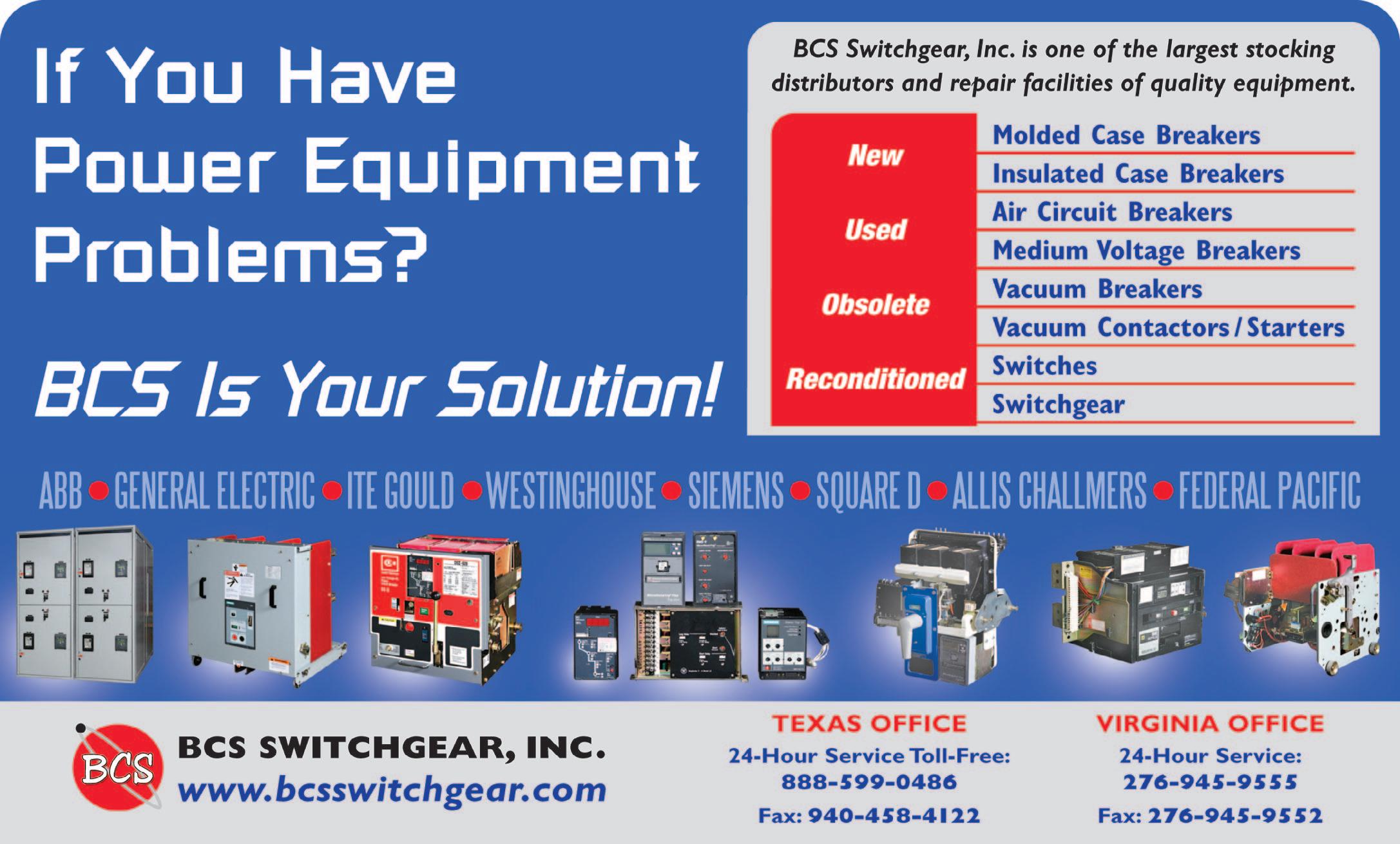 BCS Switchgear Inc l L H TX Molded Case & Air-All Mfrs-Buy/Sell N U R 888-599-0486 940-458-4122