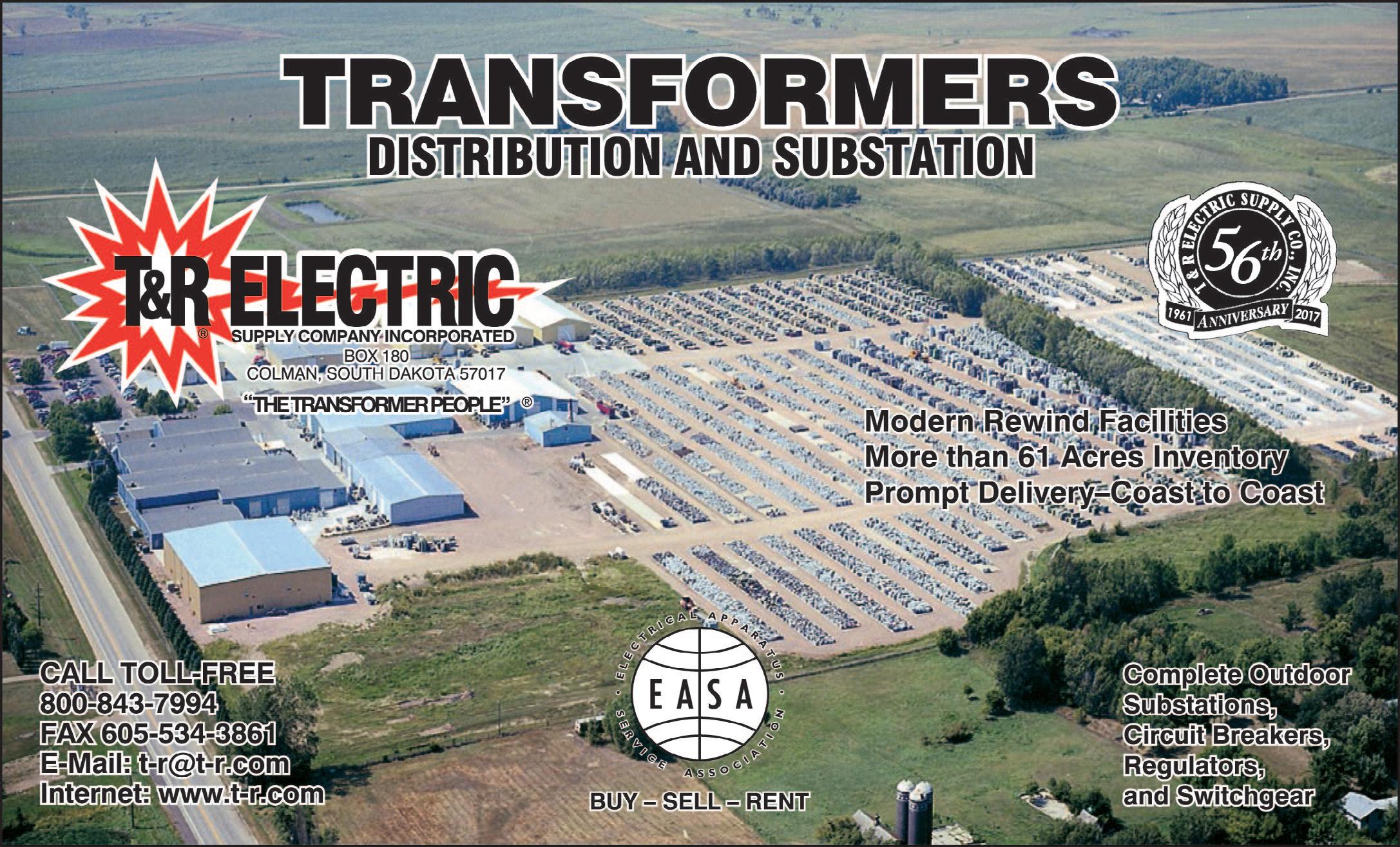 Bruce Elec Equip Corp l L H NY Up To 15 KV-3000 KVA N U R 631-223-7173 631-226-8772 Southland Electrical l L H NC All Major Manufacturers N U R 800-476-1486 866-209-1120 T&R Elec Sply Co Inc l L H SD Buy/Sell/Repair/Rent/Deliver N U R 800-843-7994 605-534-3861