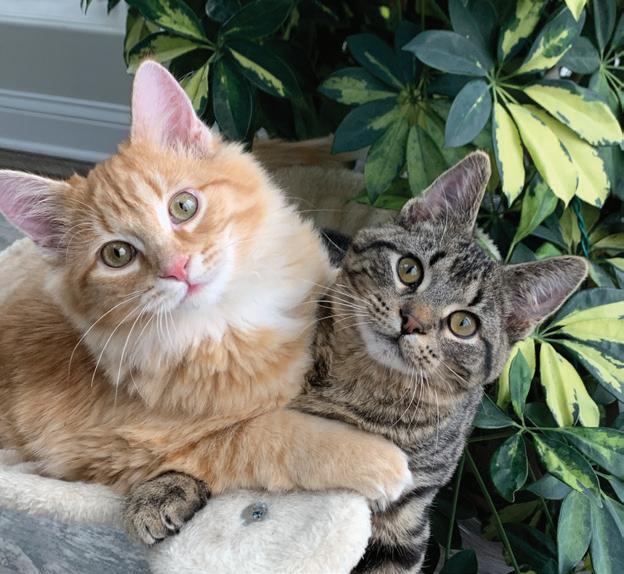 “The yellow cat is Liam, and Leo is the grey cat. Liam was found in a barn a week after Leo was born, and Leo’s mother let Liam join their family. He was super small, and we thought he would be a runt. Well, that didn’t happen. Liam weighs 18 pounds, and Leo is 8.5 pounds. They are super spoiled.”