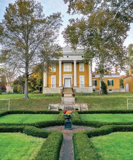 But there’s no danger of the Lanier Mansion blending into the background. Dubbed the crown jewel of Madison’s historic district, the 13,500-squarefoot National Historic Landmark rises majestically above the Ohio River shoreline, fronted by four 30-foot columns that reflect its Greek Revival influence. Another Greek Revival characteristic is symmetry, said Site Manager Marnie Leist, “and there are actually faux doors just to implement symmetry.”