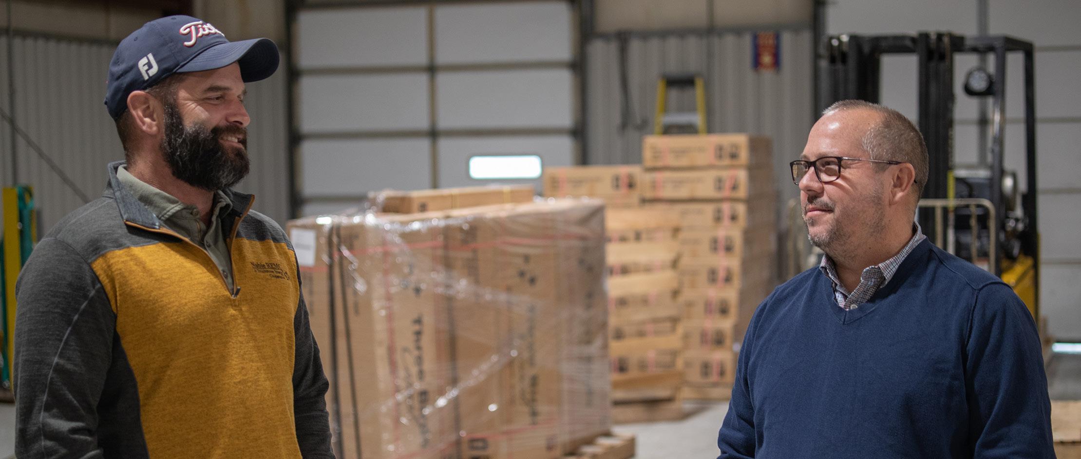 Among the recent graduates of the North American Lineman Training Center are Hoosier Energy scholarship recipients Cody Case and Briar Houser. Andy McComas, institutional director of the center, congratulates Case and Houser on their achievements.