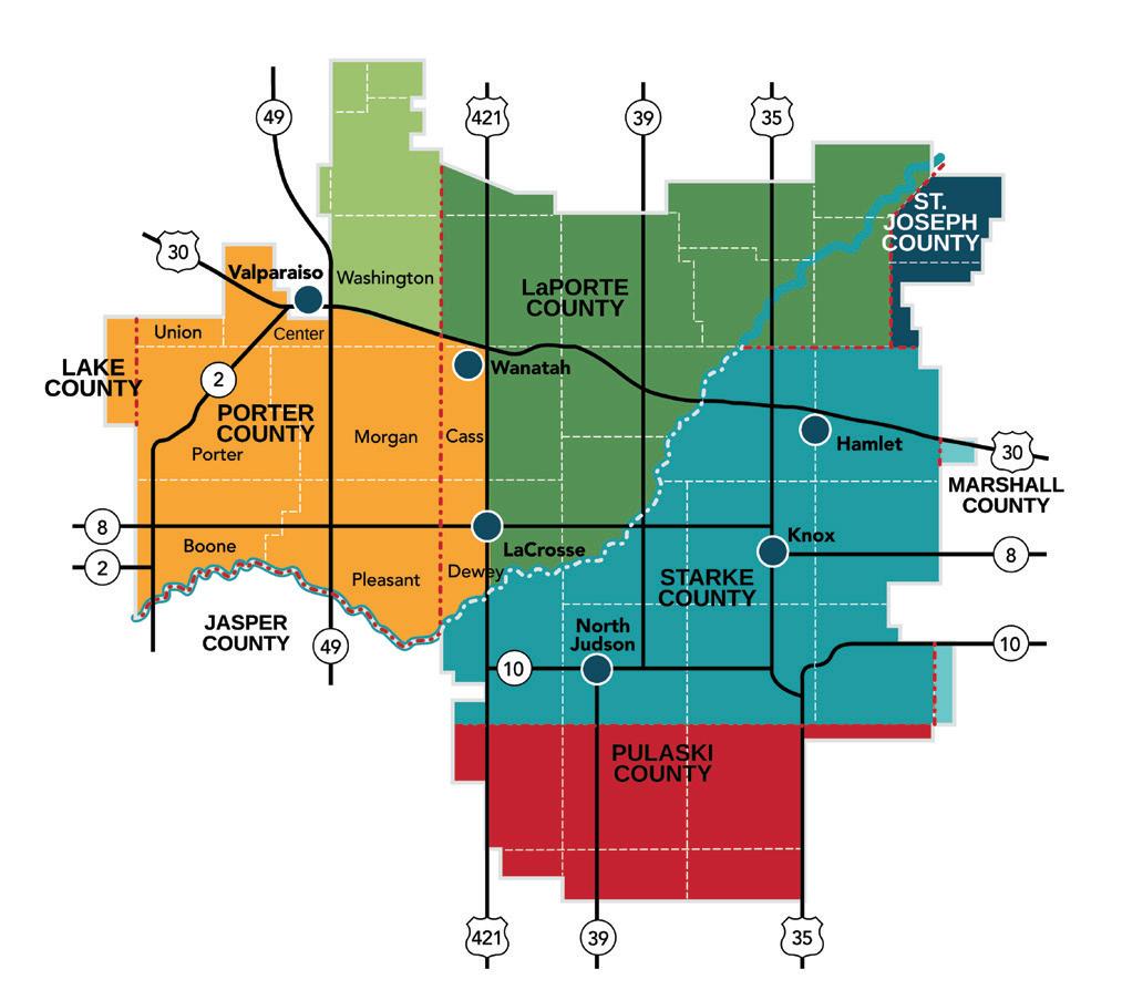 • Porter County: Union, Center, Washington, Porter, Morgan, Boone, and Pleasant townships