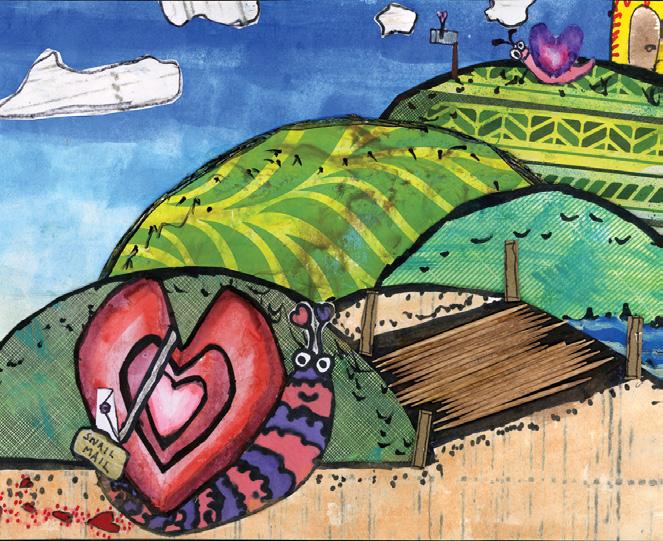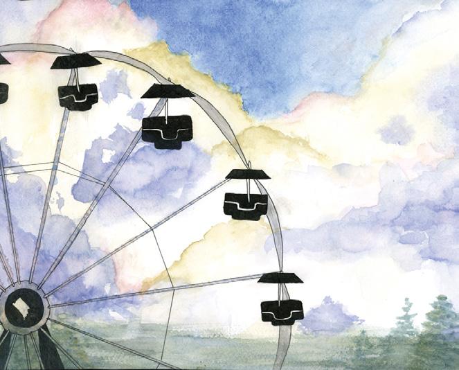 to create the illustration. He rendered the work primarily in colored pencil. Though obviously the pie couldn’t have tasted like his dad’s, he says it was still pretty good. One of the benefits of photographing the pie was it was still edible when he was done. The work not only earned him $200 for his third first-place win in the contest, but $100 extra for being Best of Show.