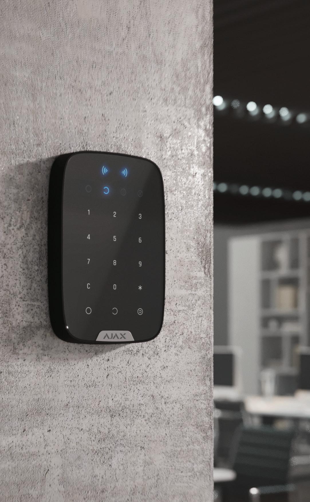 Πώς μπορώ να παρακολουθώ το σύστημα ασφαλείας Ajax; Ο ευκολότερος τρόπος παρακολούθησης είναι να χρησιμοποιήσετε την εφαρμογή Ajax Security System για iOS και Android. Η εφαρμογή θα σας επιτρέψει να οπλίσετε / αφοπλίσετε το σύστημα και να δημιουργήσετε καρτέλες με τις συσκευές σας (συμπεριλαμβανομένων πληροφοριών σχετικά με την κατάσταση του σήματος, τη στάθμη της μπαταρίας και τη θερμοκρασία). Το σύστημα μπορεί επίσης να ελεγχθεί με το Ajax SpaceControl και/ή το KeyPad.