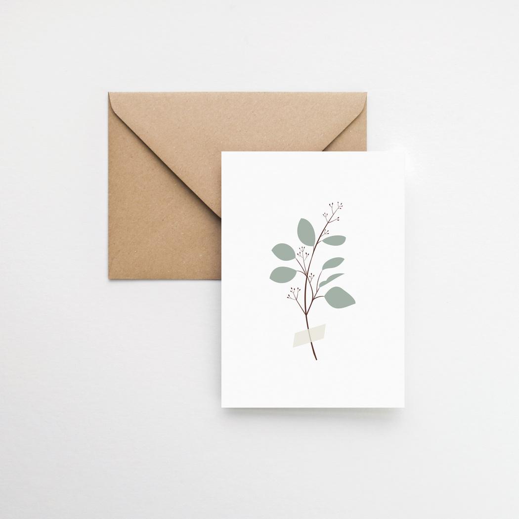 Size: A6 / 10.5 x 14.8 cm / 4.1 x 5.8 in, 300 gsm cardstock. Blank inside with branded back side. Comes with kraft envelope. Protected by biodegradable transparent sleeve.