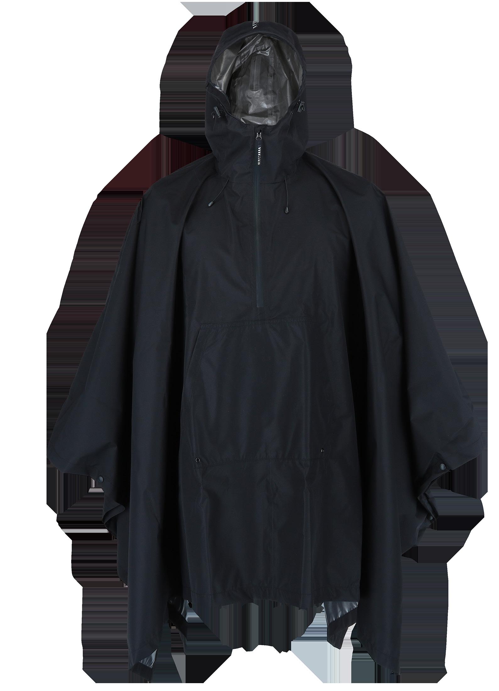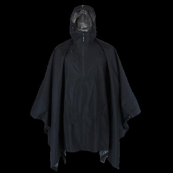 The tarp features a hood, and when combined with the accompanying belt, it can be adjusted individually and used as a poncho.