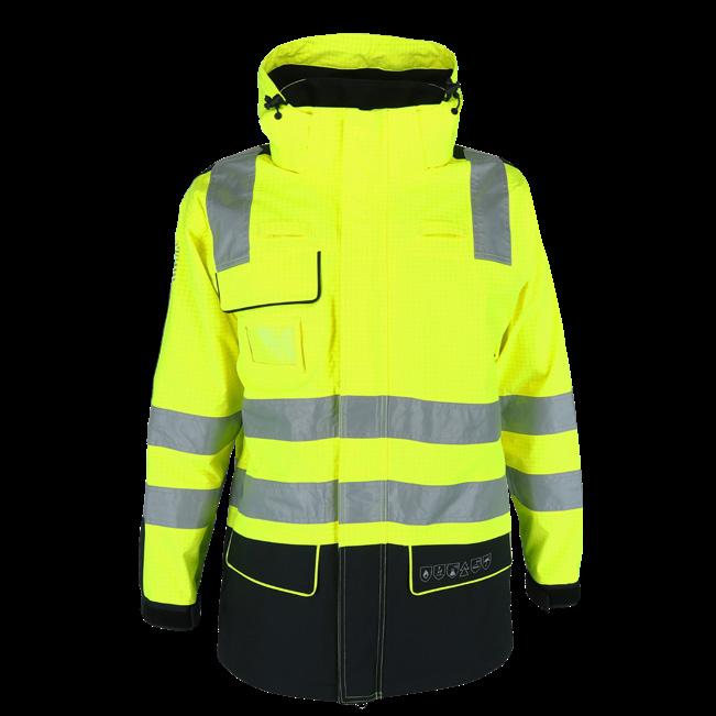 EN 343: Work attire certified under EN 343 offers defence against precipitation, including rain, snow, fog, and ground moisture. Both the garment and its seams undergo testing for water penetration and resistance to water vapour.