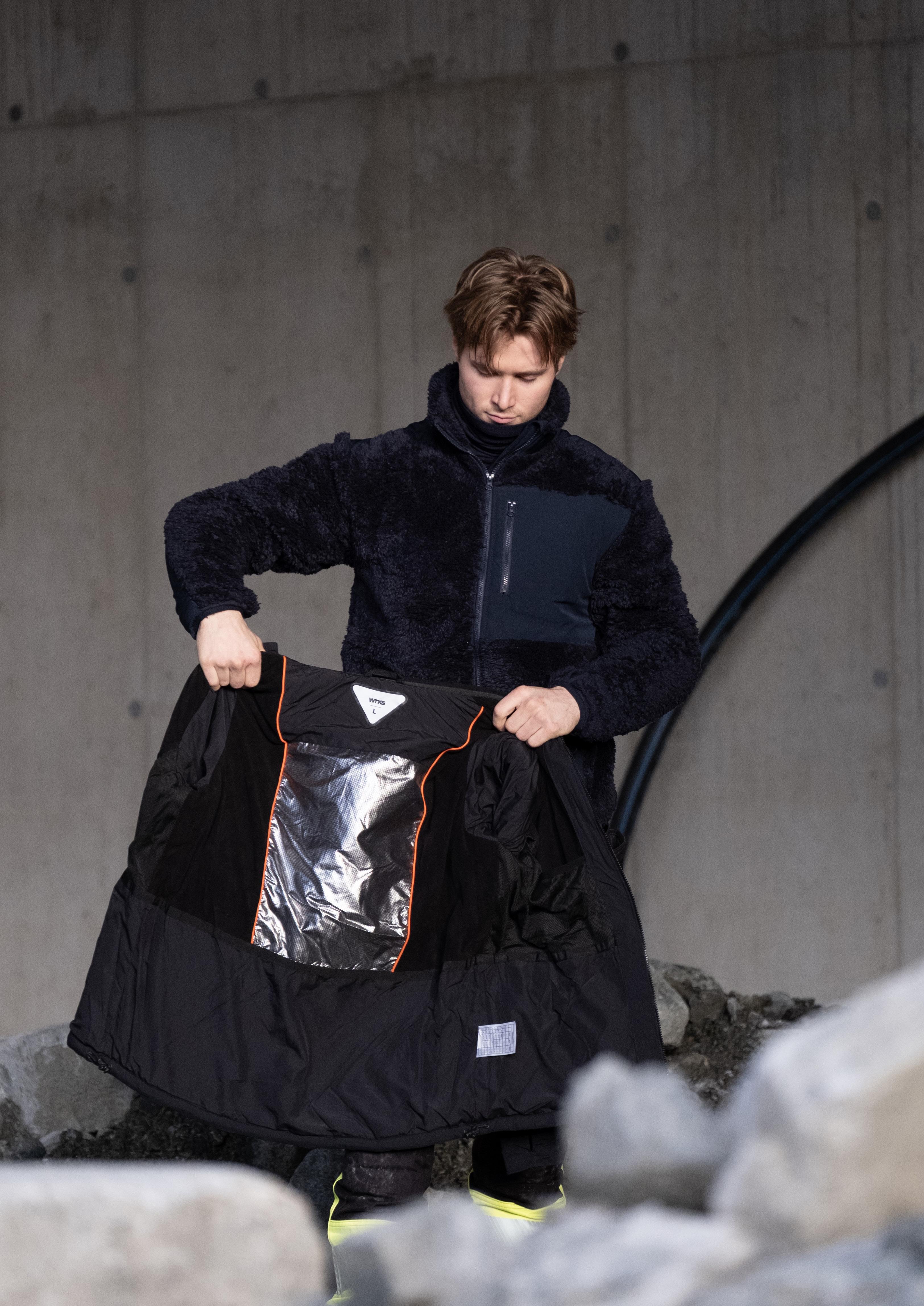 IMPERMEABILITY: We recommend applying waterproofing after each wash, or as needed. Once the garment has been washed, remove it from the washing machine and shake off excess water. Hang the damp garment and spray evenly over the entire outer fabric. Pay special attention to high-wear areas. The garment can also be treated with suitable waterproofing that is washed in. Before drying the garment, turn it inside out so that as much of the waterproofing as possible is absorbed into the outer fabric.