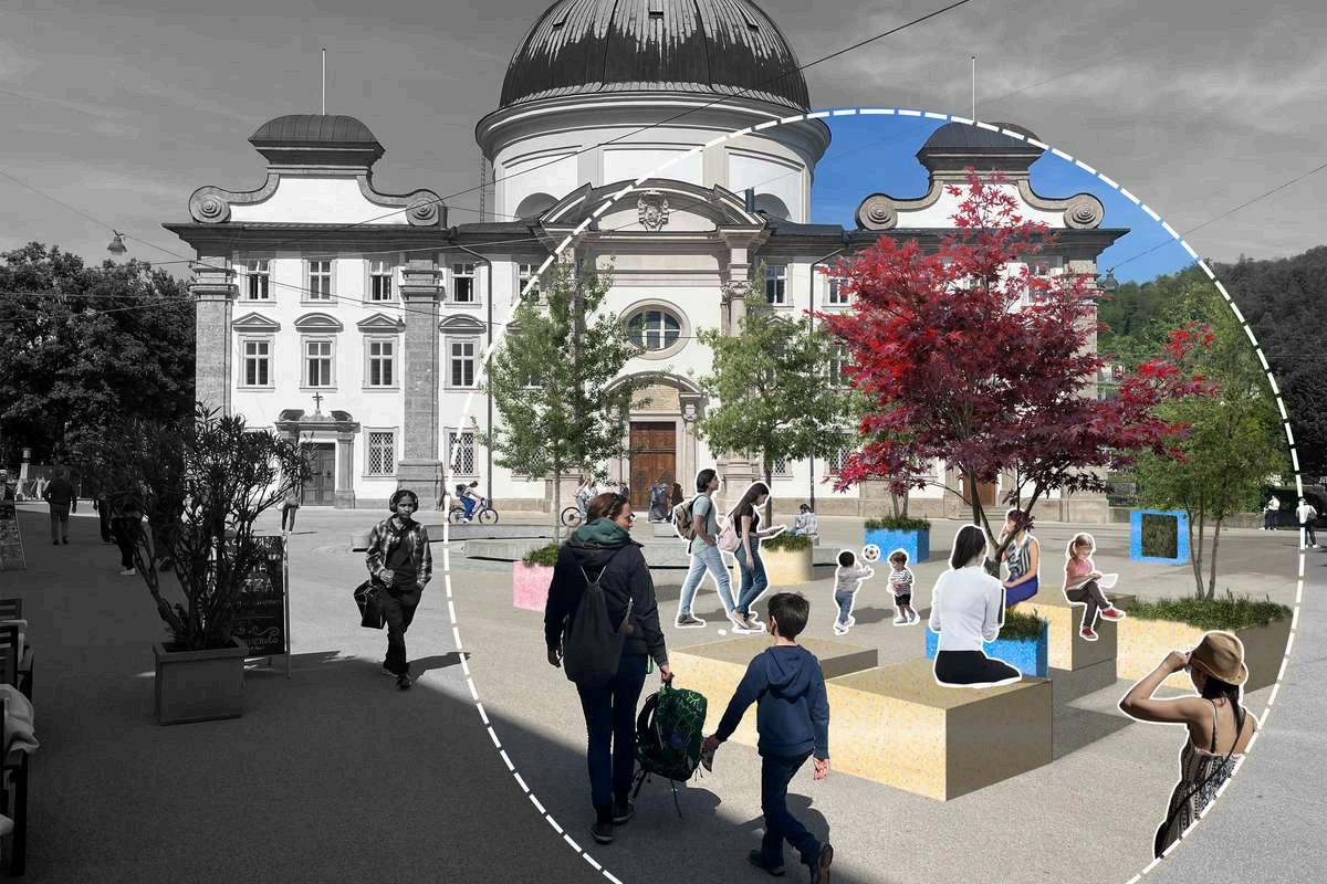 Aimingtocreatemoreversatileandwelcomingpublic spaces,thecityofSalzburgisexploringtheintegration ofadaptiveurbanfurniturethatmeetstheevolving needsofitsresidents.Thisinitiativeincludesthe additionofgreenery,suchastreesandplants,aswell asstrategicallyplacedumbrellastocombattheurban heatislandeffect.