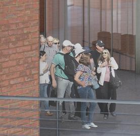 The first step was to create a mezzanine around the Bates hall, extending outside the lobby, entering the courtyard. The materiality of the mezzanine is chosen carefully, in order not to block the light for the visitors on the lower level. Therefore, the balcony is a metal platform within vault lights so that the natural light can enter through. The glass rail also allows the sunlight to enter the lower levels.