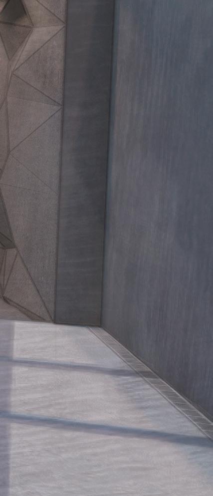 The floor uses geothermal energy. It is painted black, covered by four inches of water, allowing the heat to radiate more effectively. Furthermore, the lights suspended from the ceiling between the rods contribute to the reflection of the overall structure, creating the illusion of infinity. Another element was to invent a triangular skylight shining directly onto the stairs and the water.