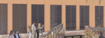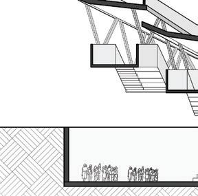 The program’s ideology is transparency. Each ramp corresponds to the direction of the street grid around the existing building, creating five main linear axes. The building is ‘the performance of the arts’. It consists of the market on the ground floor, which extends to the cellar floor with gallery spaces and stores for artists. Classes, studios, and workspaces are divided throughout the following three levels. The roof is transformed into a green roof that creates a serene atmosphere surrounded by vegetation. The pool of water in the middle of the roof shines down to an atrium for more transparency and calmness.
