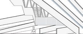Each ramp has a platform right under, attached by trusses making the structure stable. These platforms create enclosed spaces for students to study and have classes protected from the rain.