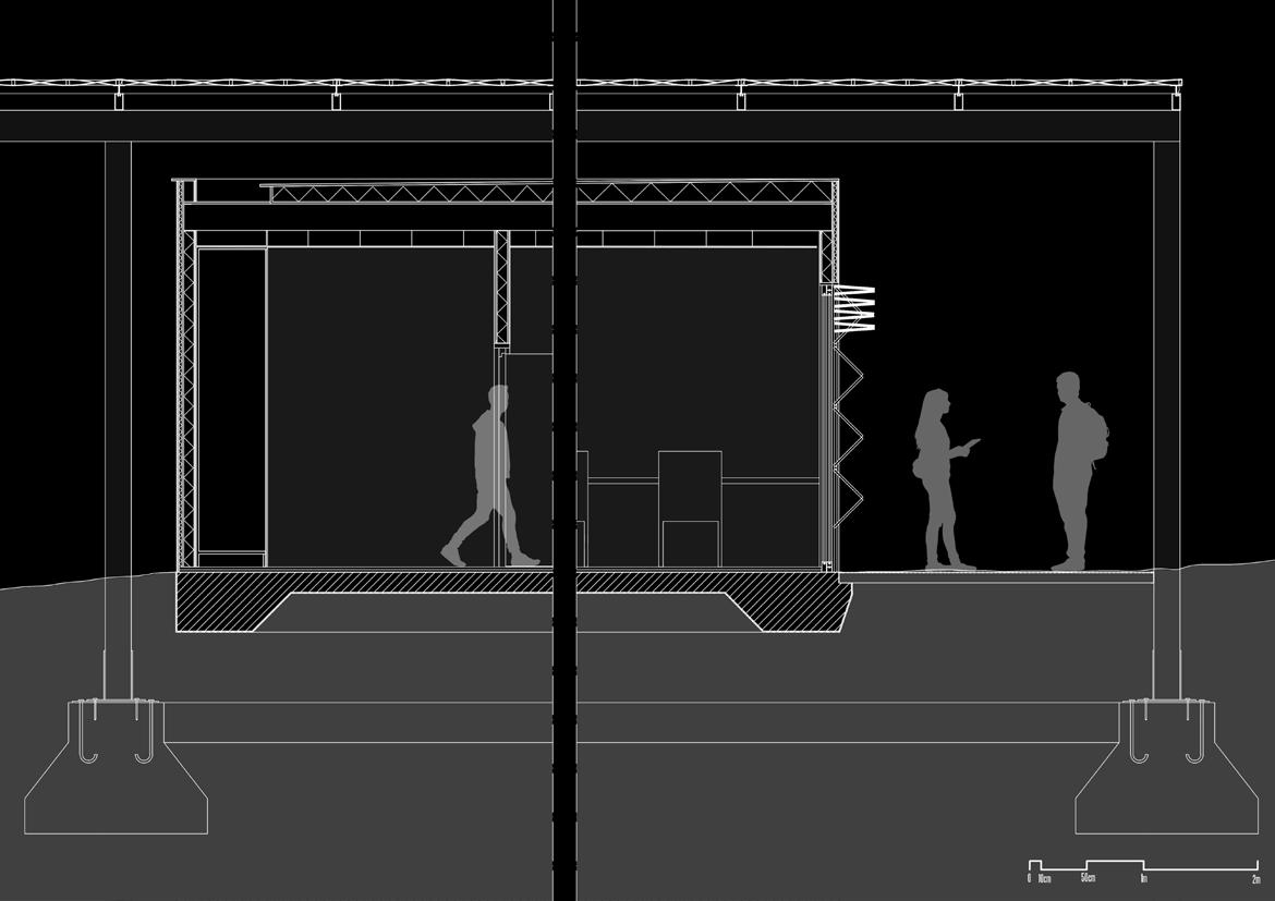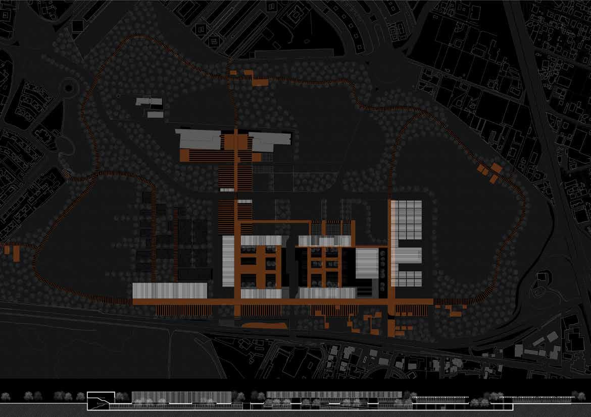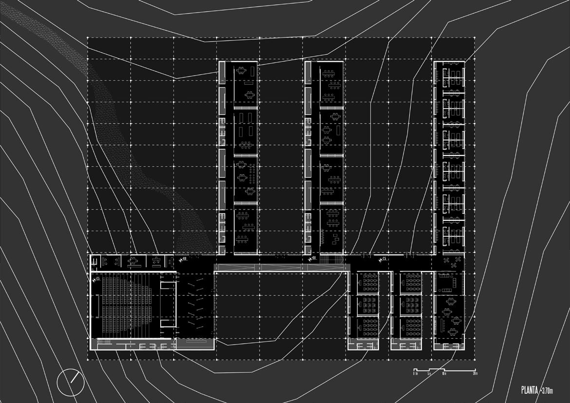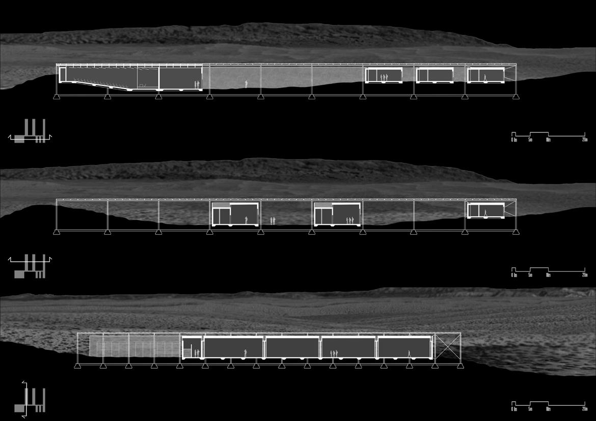 Far form the city, far from the habitual schemes. How is it possible to live in the desert? How is it possible to face the infinity of the sand dunes? The answer was a thin, straight line. A wide solar panels roof generates constant energy, provides shade and protects the system of volumes placed right behind. Structurally independent it is an agile metal grid. Auditorium, common spaces, labs and dorms to host scientists are resistant insulated boxes that provide thermal comfort all day and all night long.