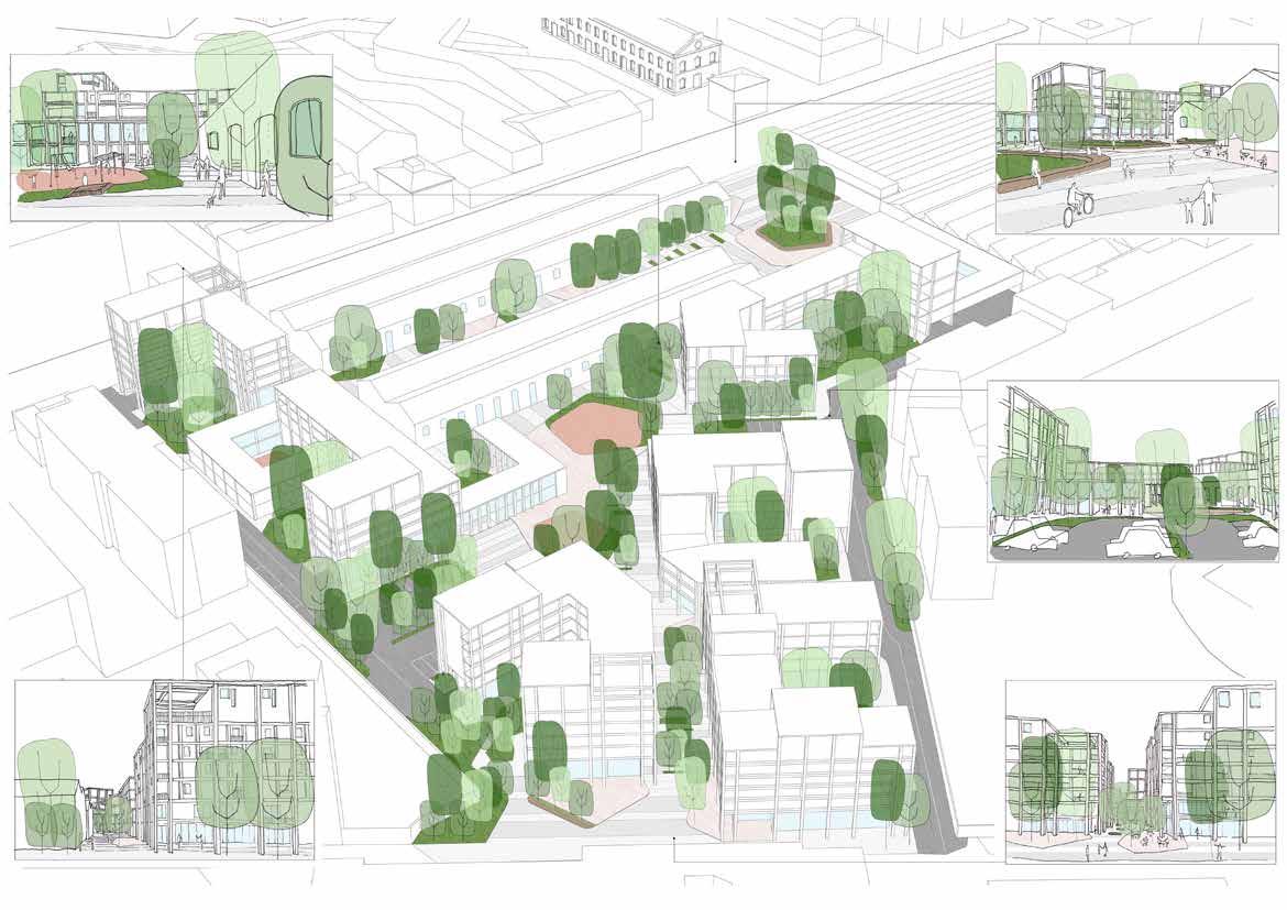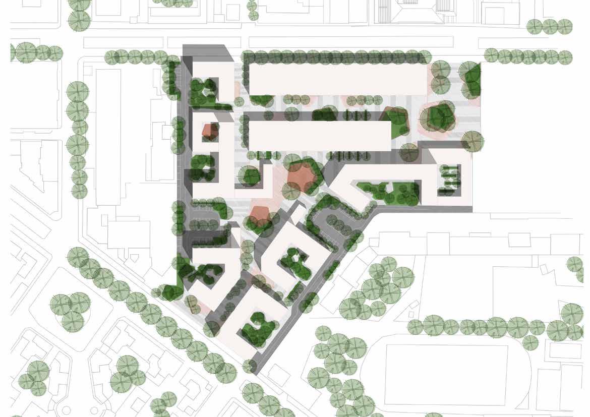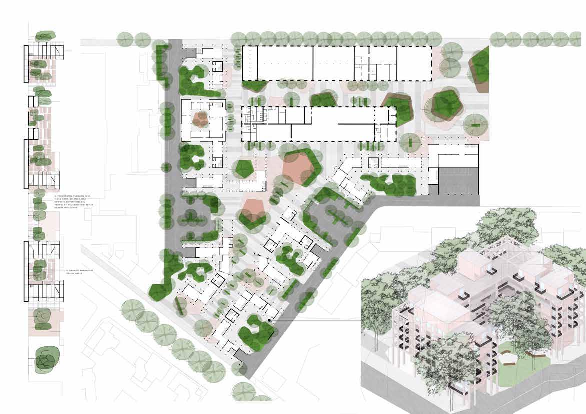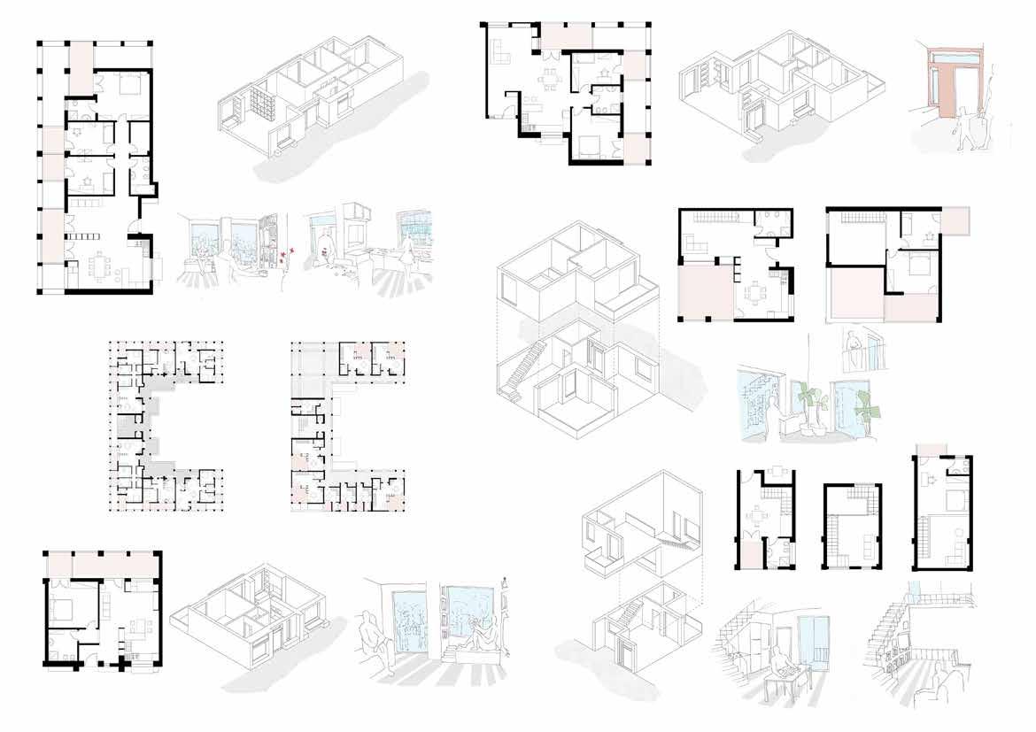 This the proposal of a design that could represent the architectural expression of community life: living together, sharing spaces and moments. Courtyard balcony houses organized around outdorr public spaces of different kinds. A project of residential buildings where private and public spheres are connected through different shades of in-between places that offer a chance for things to happen and people to meet.