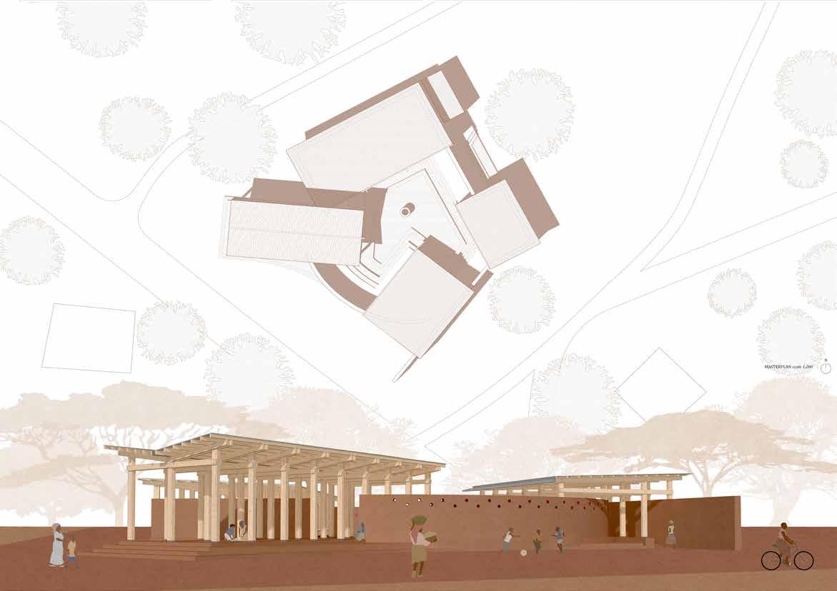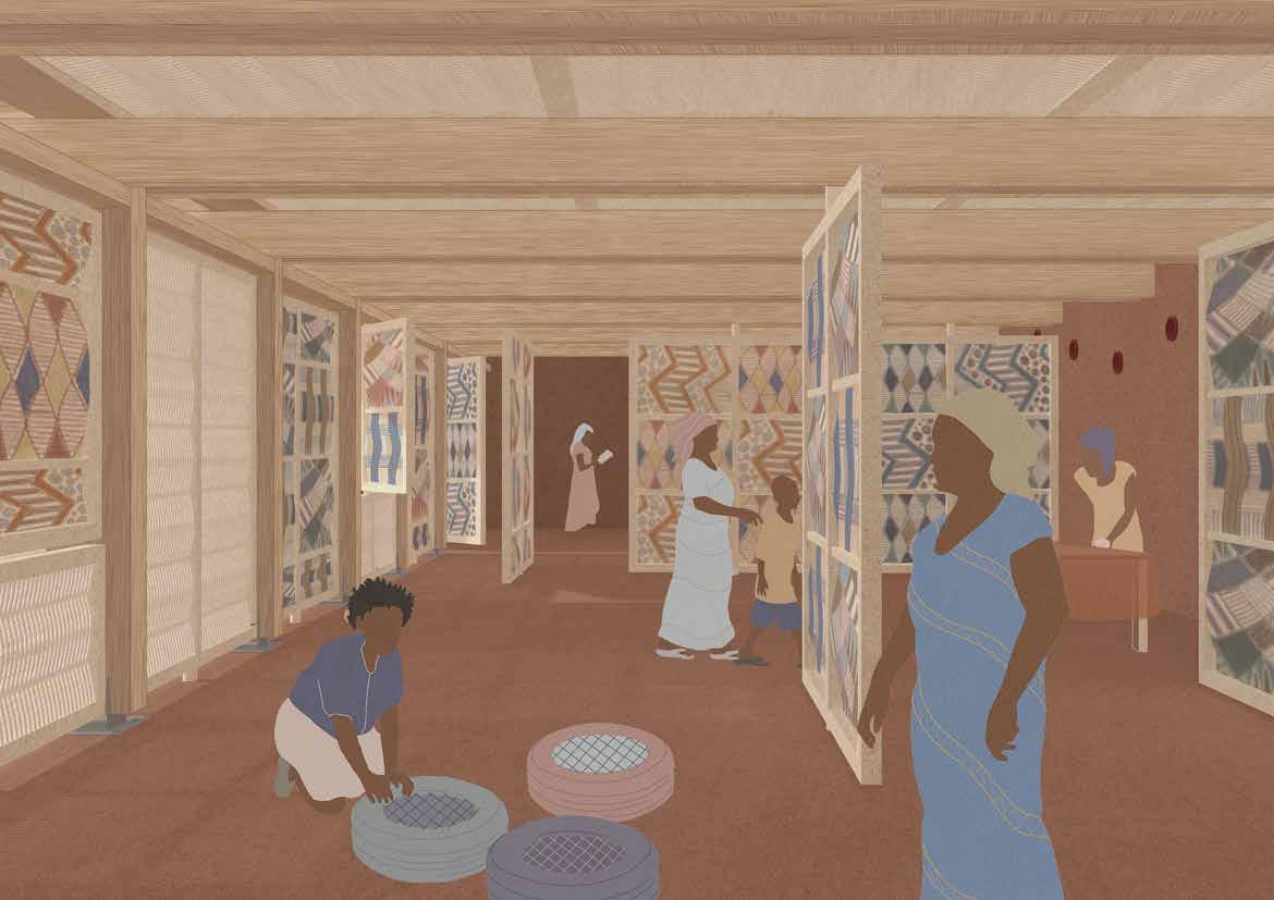 Inspired on Kaira Looro Architecture for peace competition - 2021 edition, the women’s house represents a space where women can get together to take shelter discuss, learn and develop new skills leading them towars empowerment. The goal was to think of a space to gather and grow, through an architecture that expresses embrace and freedom. Guided by sustainable design ideas, it is entirely based on self-construction using only recycled and local materials.