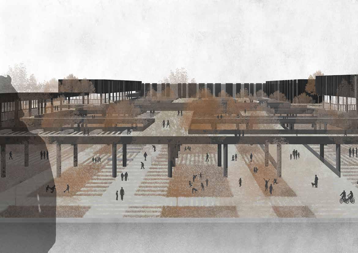 Non just a place to cross, but a place to stay. This was the concept behing the requalification project of Anagnina station. A place to take the bus and the subway, to go shopping, to work or study, grab a coffee or play on the grass. The goal was to design this urban fragment on a human, welcoming scale but also as a place that never sleep and never stops evolving and adapting to changing and multiple needs.