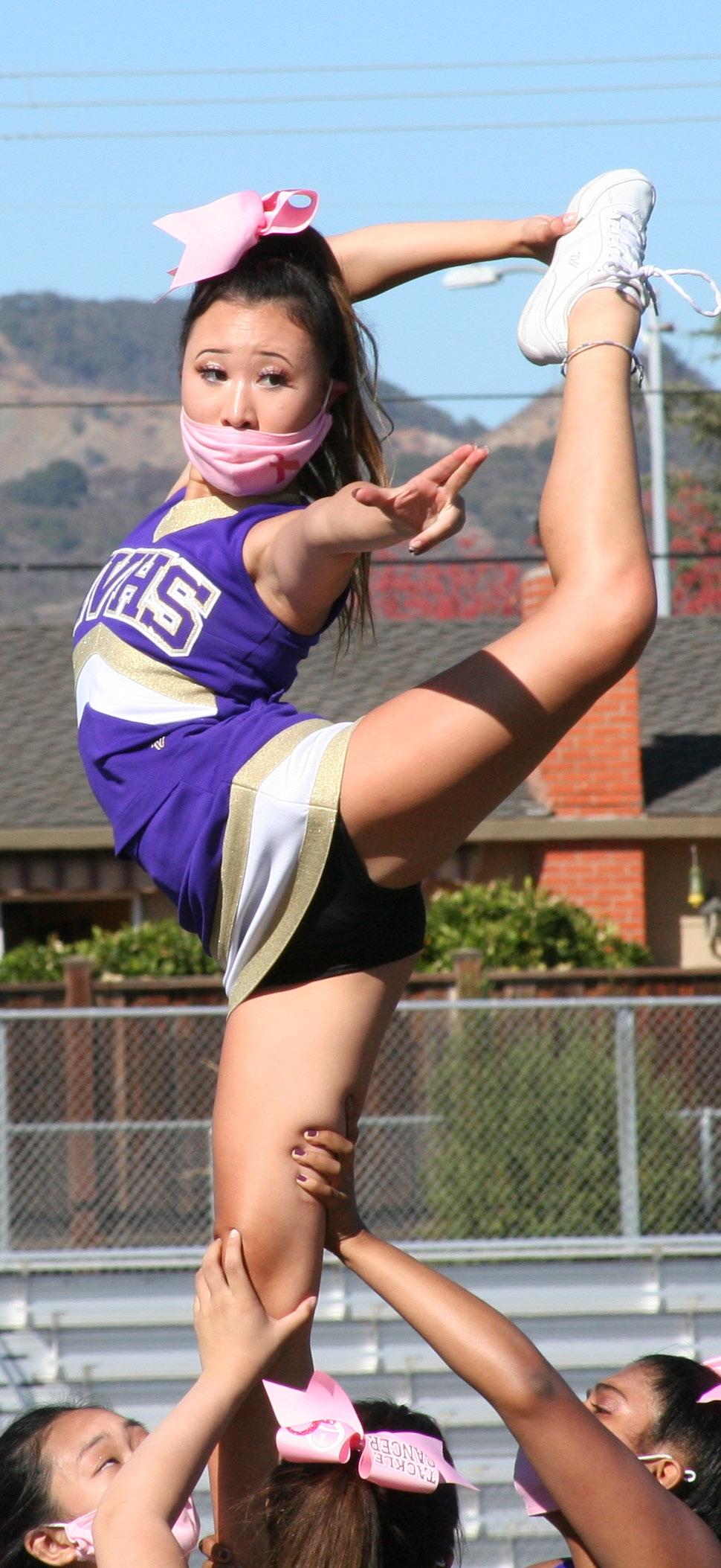 Junior Anika Lin gets lifted by her teammates and poses to the song “I Like It” by Cardi B during MVHS Cheer’s performance.