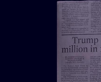 Notably, on March 9, Columbia University alum ‘24 and Palestinian activist Mahmoud Khalil was detained for protesting and had his green card revoked. His arrest was the first widely-publicized deportation e ort of this kind by the Trump administration, which has pledged to crack down on pro-Palestinian student activists claiming that they align with Hamas, a designated terrorist organization. Trump’s administration has further threatened to cut millions of dollars in federal funding from universities with protests on their campuses, including $400 million from Columbia.