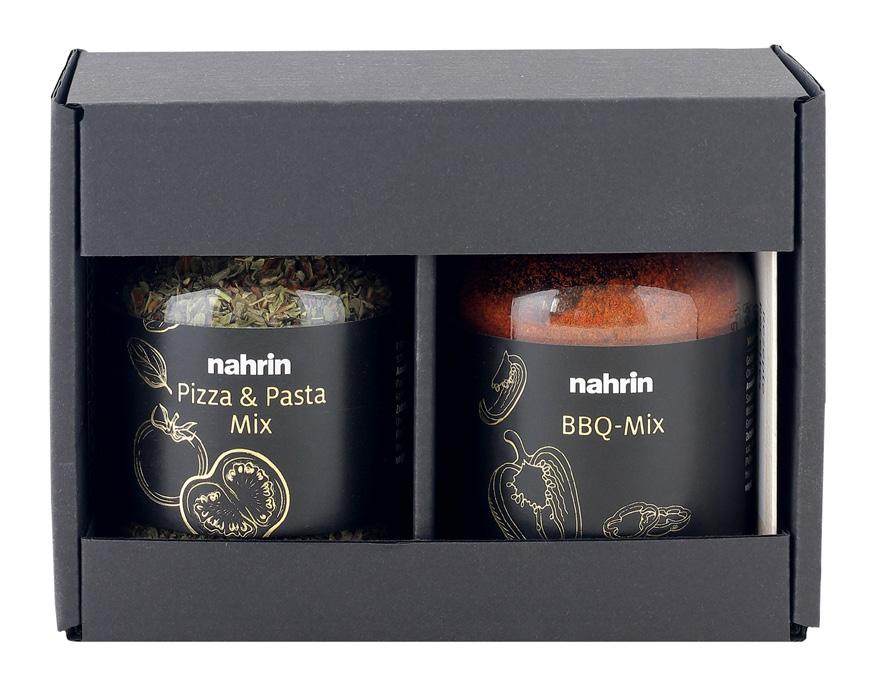 1 db Nahrom fűszerkeverék 330 g + 1 db Bors fűszerkeverék 300 g és 4 db üres fűszertartó doboz