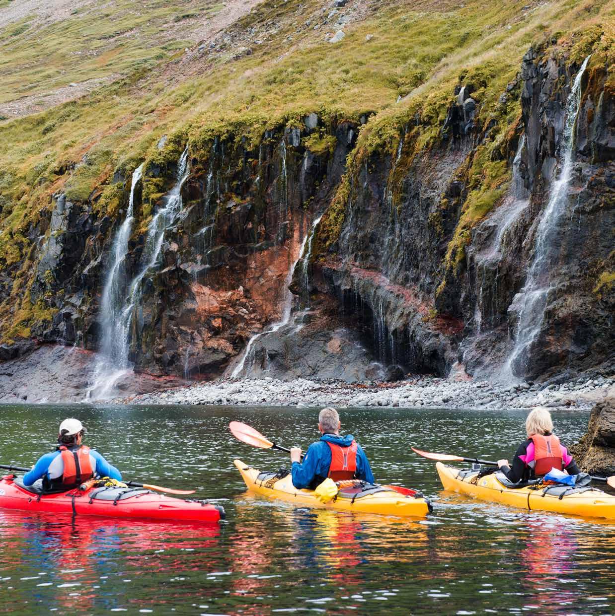 ◆ Continue to the sheltered bays of Haganesvík for a sea-kayaking adventure, weather permitting