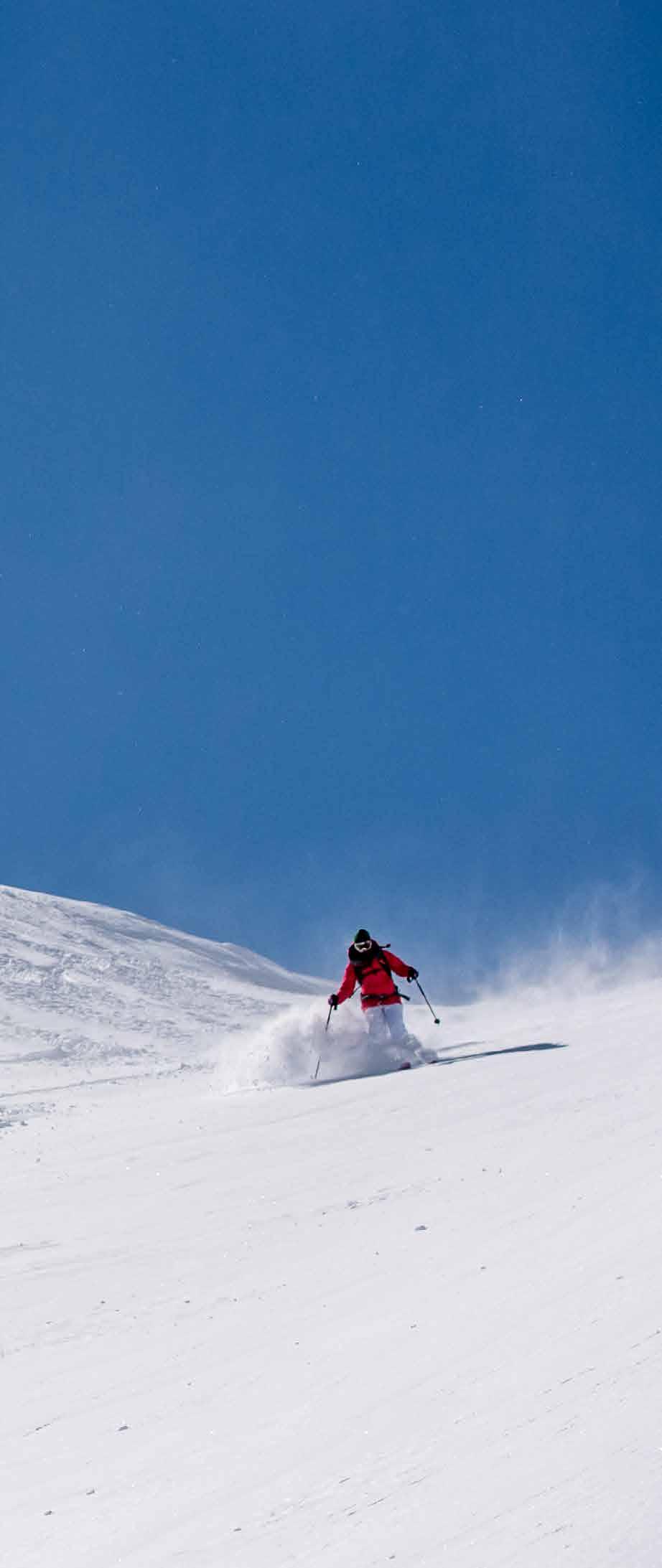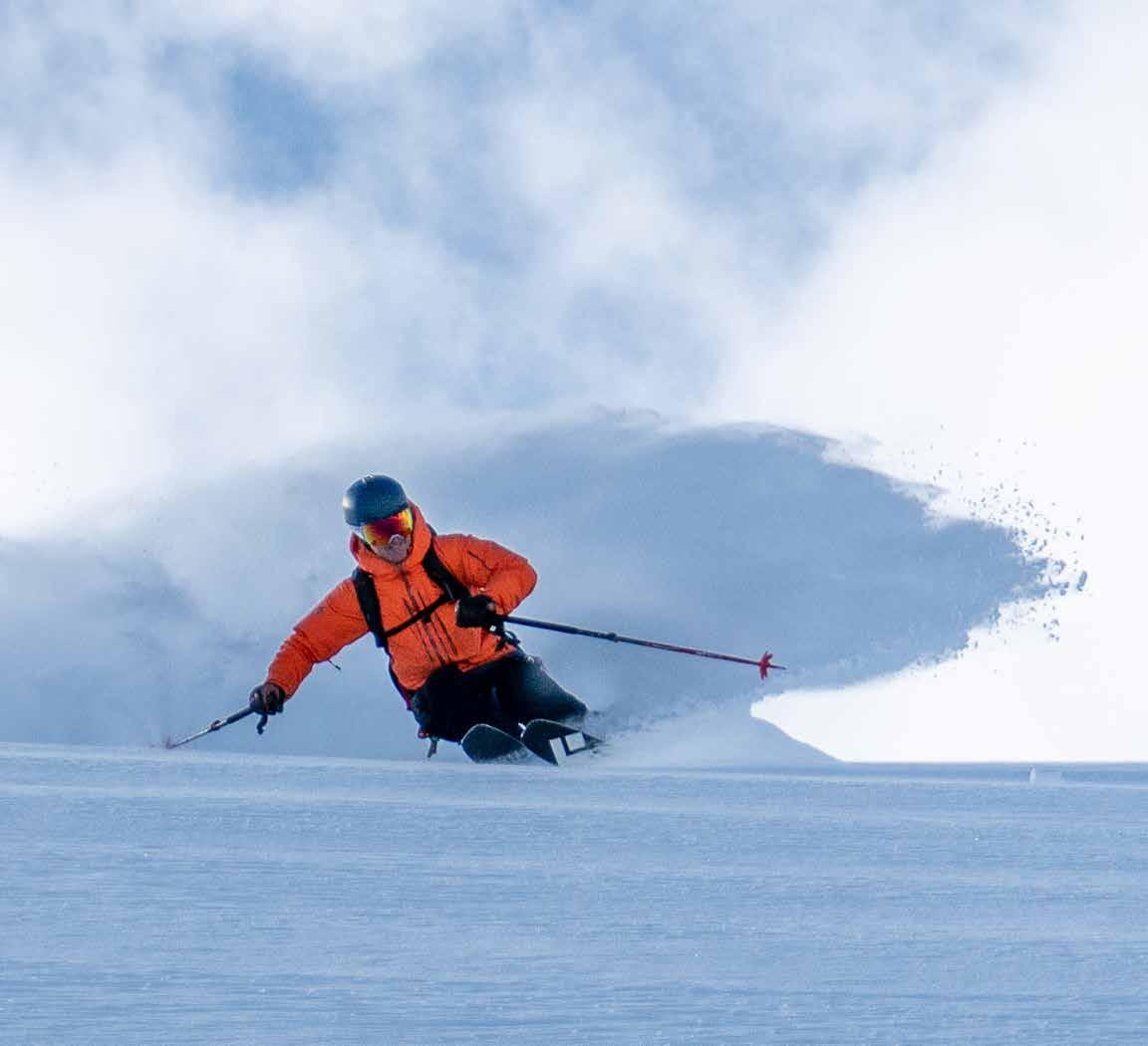 In each remote destination, delicious cuisine and wellappointed accommodations are combined with expert local guides who take you exactly where you want to go—whether it be mellow side-country trails or daring descents down unnamed peaks. Guests of all ages and skill levels are encouraged to join in on the fun and improve their skills with our guides’ tactful instruction. At the heart of each experience is local culture, so guests can expect end-of-day touches like hand-foraged Génépi liqueur in a historic French mountain hut, Pisco Sours and traditional barbecued meats under the Patagonian night sky, and Icelandic fish served in a Viking-style dining room.