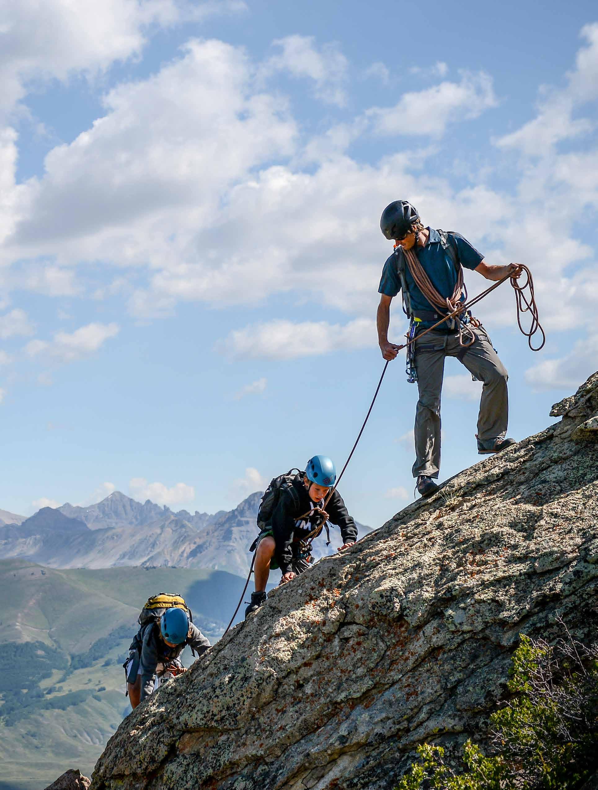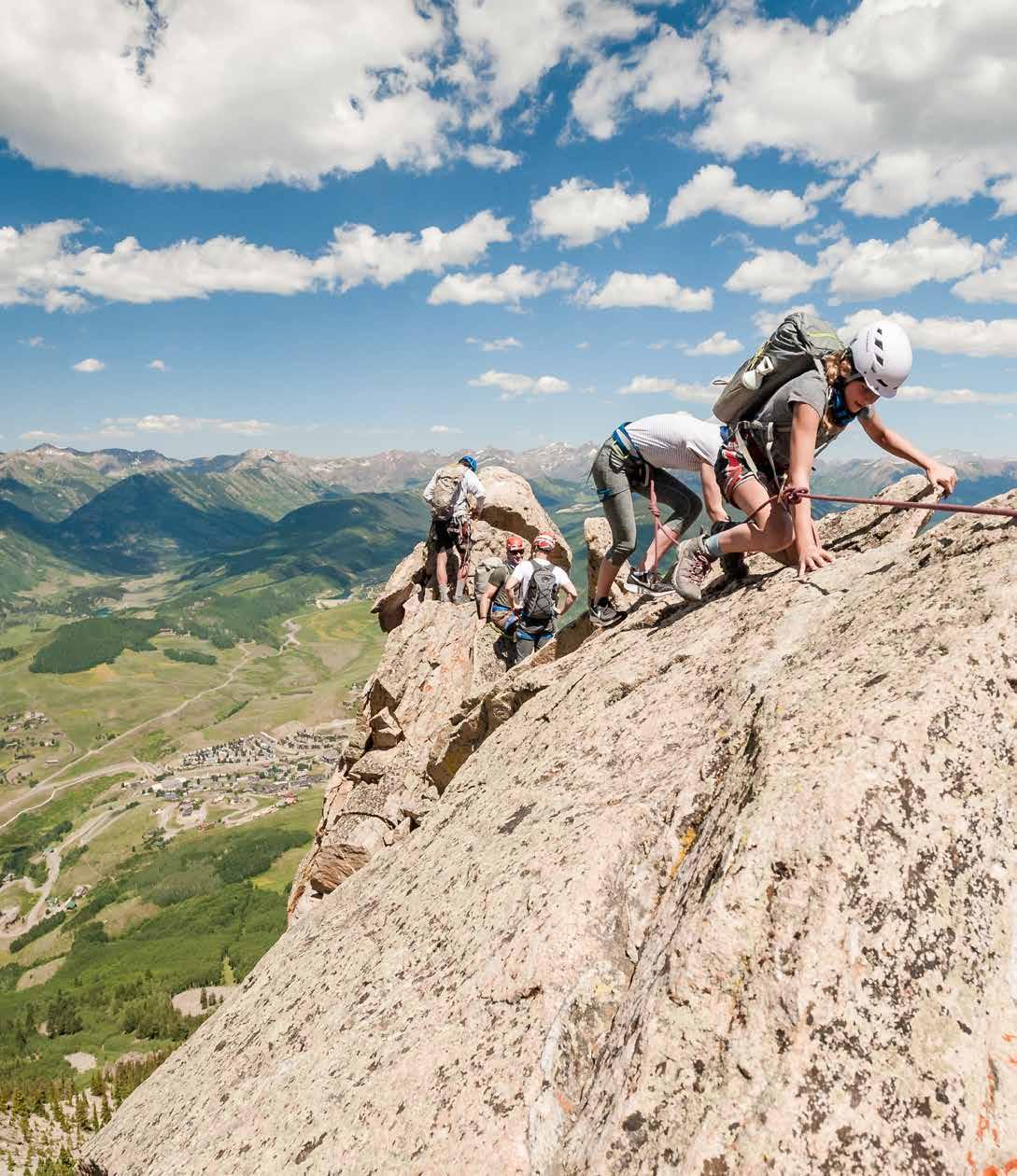 A local favorite, the Guides Ridge ascent is a ropesupported climb that follows an 800-foot ridge to Mount Crested Butte’s 12,162-foot summit. A stellar introduction to technical alpine ascents, this popular climb is suitable for adventurous families and seasoned climbers alike.