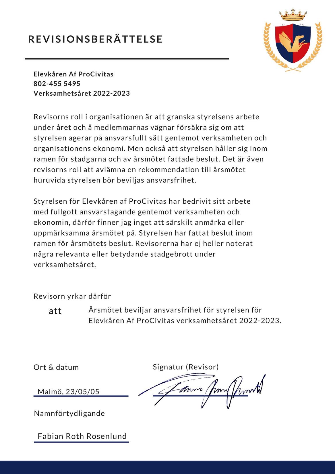 EKONOMISK REDOGÖRELSE & REVISIONSBERÄTTELSE 2022/23