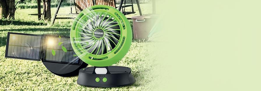 El ventilador de camping de Astarama incorpora una batería recargable que puede funcionar de forma continua hasta 25 horas, lo que le proporciona una frescura duradera. Cuenta con panel para generar energía a partir de la luz solar.