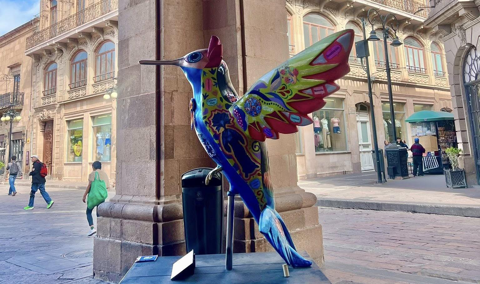 Permanece abierta al público la exposición “Identidad y primavera, un colibrí” en la arquería del Centro Cultural Palacio Municipal, donde 11 piezas en forma de colibrí fueron intervenidas por artistas visuales integrantes del Catálogo de Artistas Potosinos (CAPO).