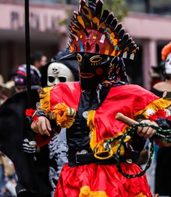 donde se sacan en procesión piezas escultóricas de unos 15 metros acompañadas de un altar representativo junto a otras figuras como catrinas y calaveras. La ofrenda monumental, que se puede visitar durante una semana.