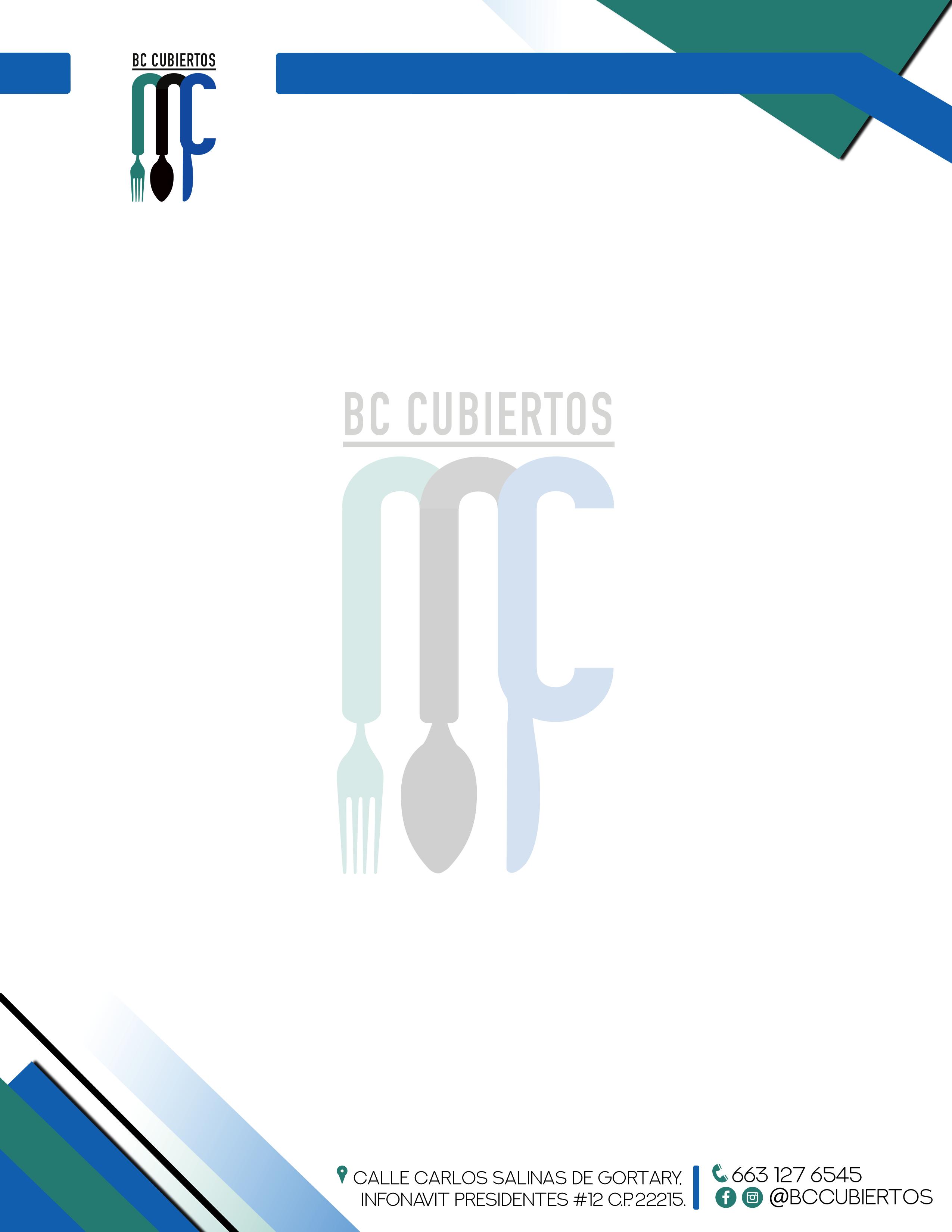 concepto visual de imagen y tipografía que conforma un imagotipo con la definición del nombre de los productos a desarrollar, es decir cubiertos/Cutlery, mostrados de acuerdo a la necesidad del mercado, precedido por la abreviación BC como la especificación del lugar de origen y elaboración, reposando sobre una línea transversal simétrica para enfatizar dicha precisión.