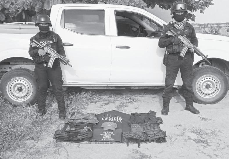 Además, en su interior se localizaron cartuchos, cuatro chalecos tácticos, así como una gorra y playera del grupo auto denominado Unión de Pueblos y Organi zaciones del Estado de Guerrero.