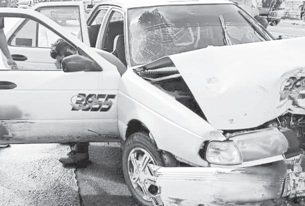 autoridades, en el choque estuvieron in volucrados un taxi colectivo amarillo con blanco de la ruta Coloso-Centro y un trái ler.